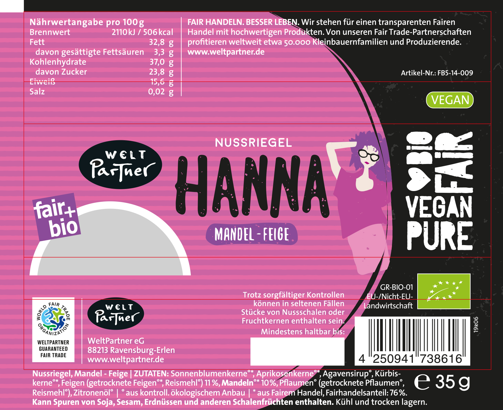 FB5-14-009 Nussriegel Hanna, Mandel-Feige, bio°, 35g, vegan