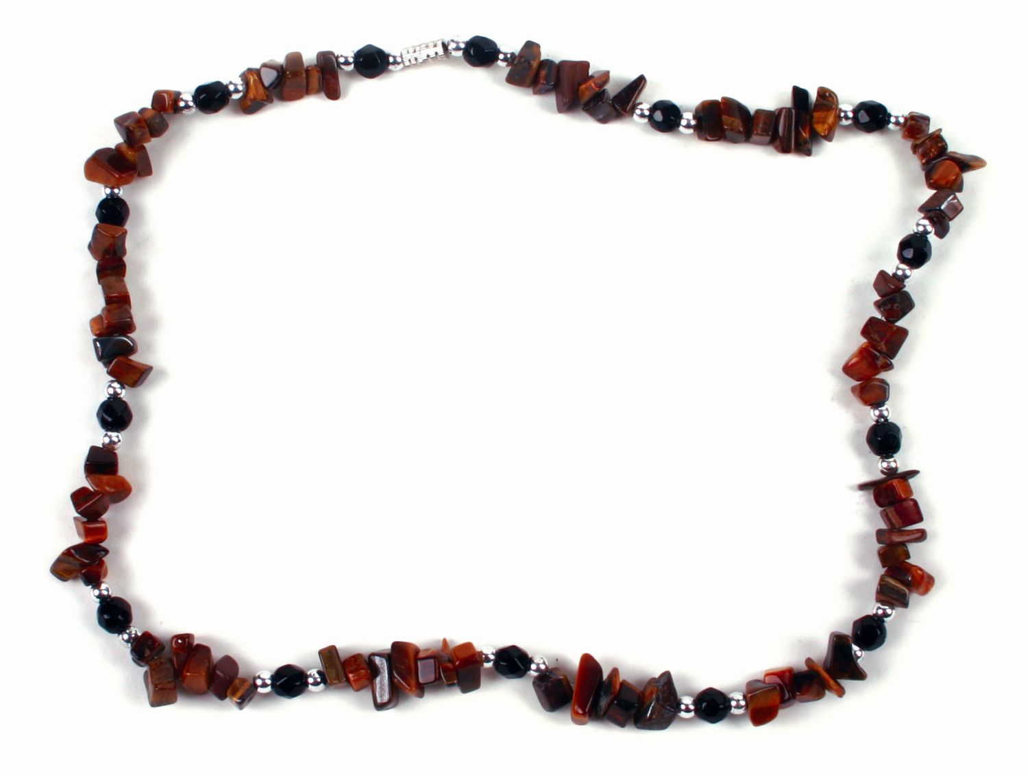 Halbedelsteine, Tigerauge und Glasperlen, L ca. 45 cm