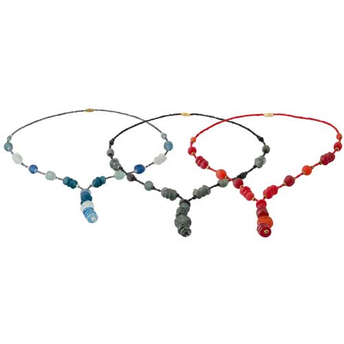 GH1-33-010-02 Halskette, Y-Form, mit handgearbeiteten Perlen aus Recycling-Glas, schwarz, L29