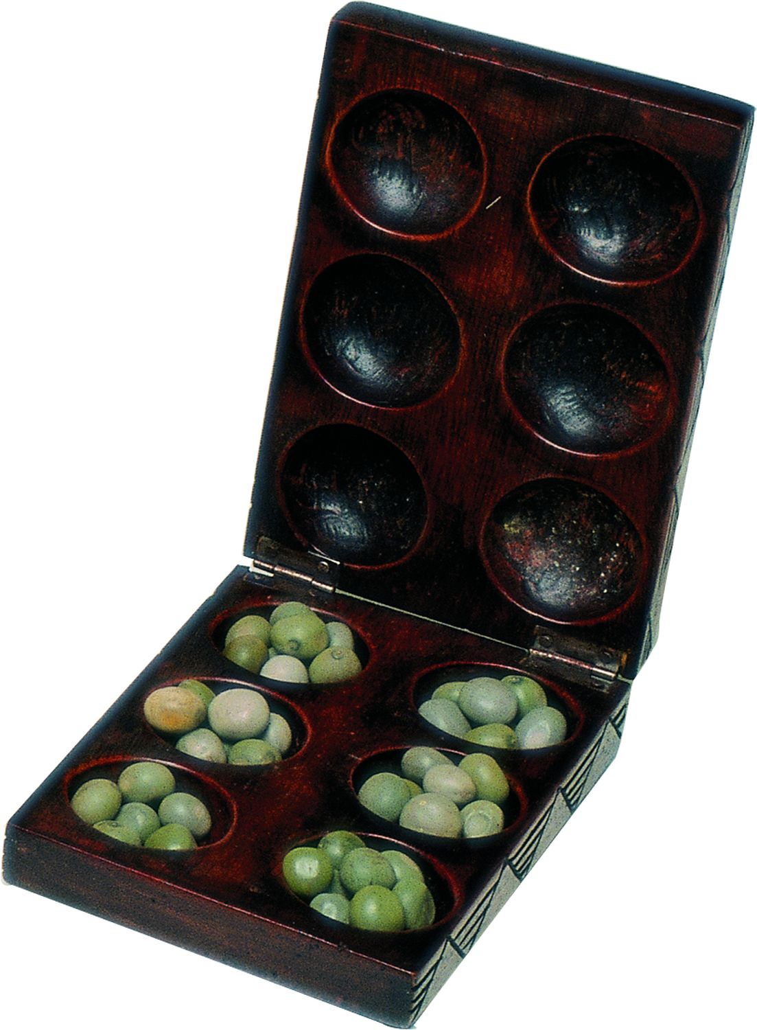 GH2-90-501 Oware-Spiel, Buchform, klein, mit Schnitzerei