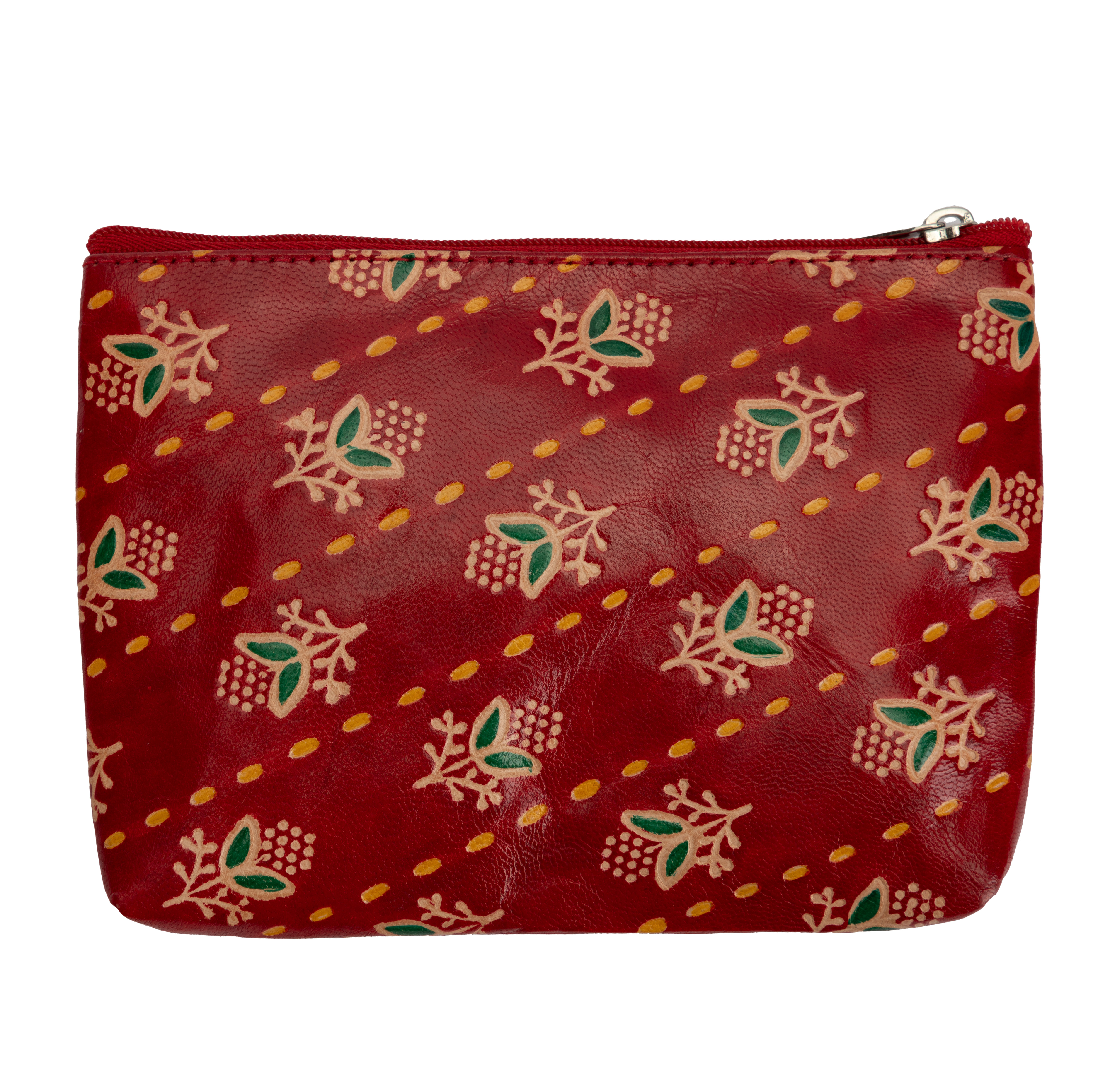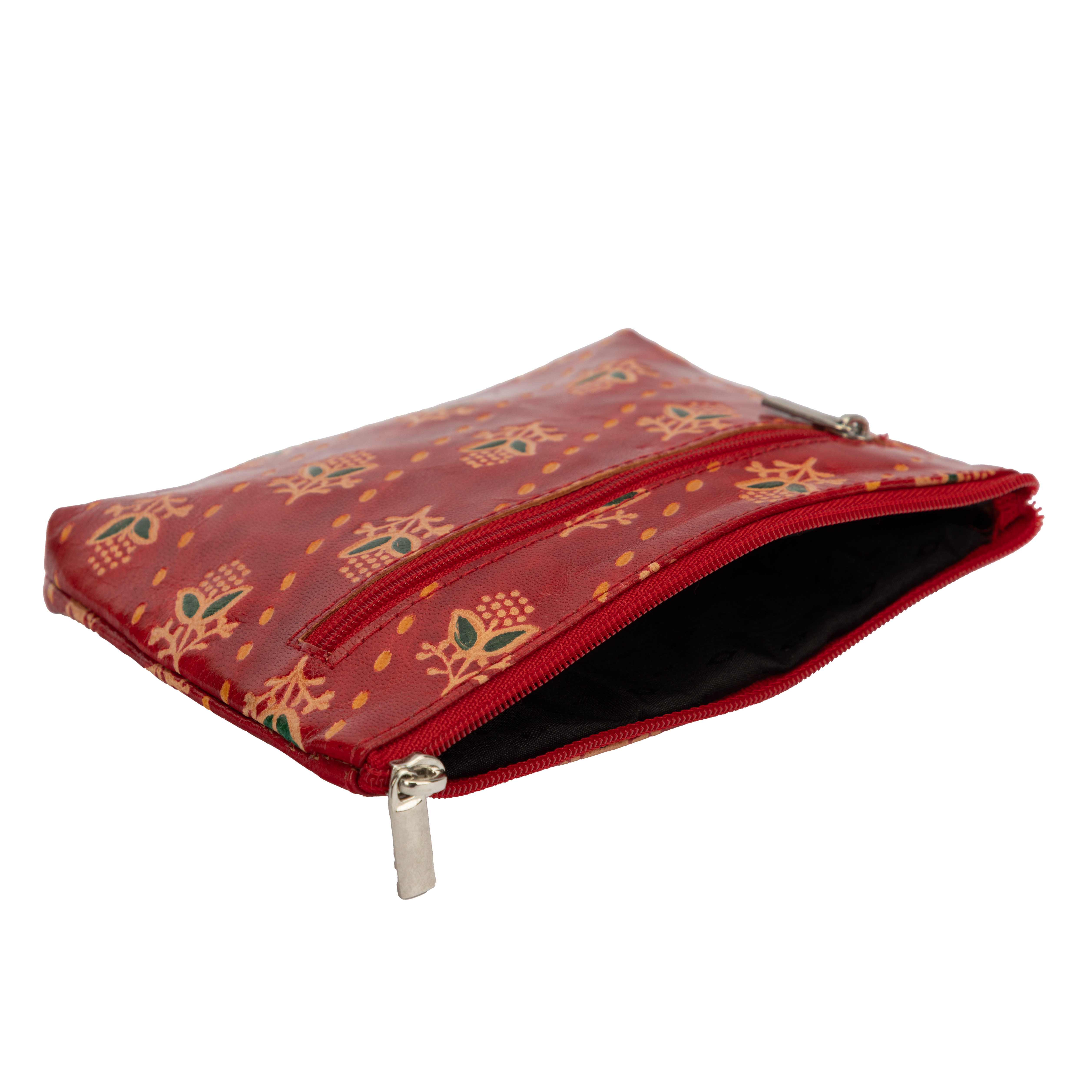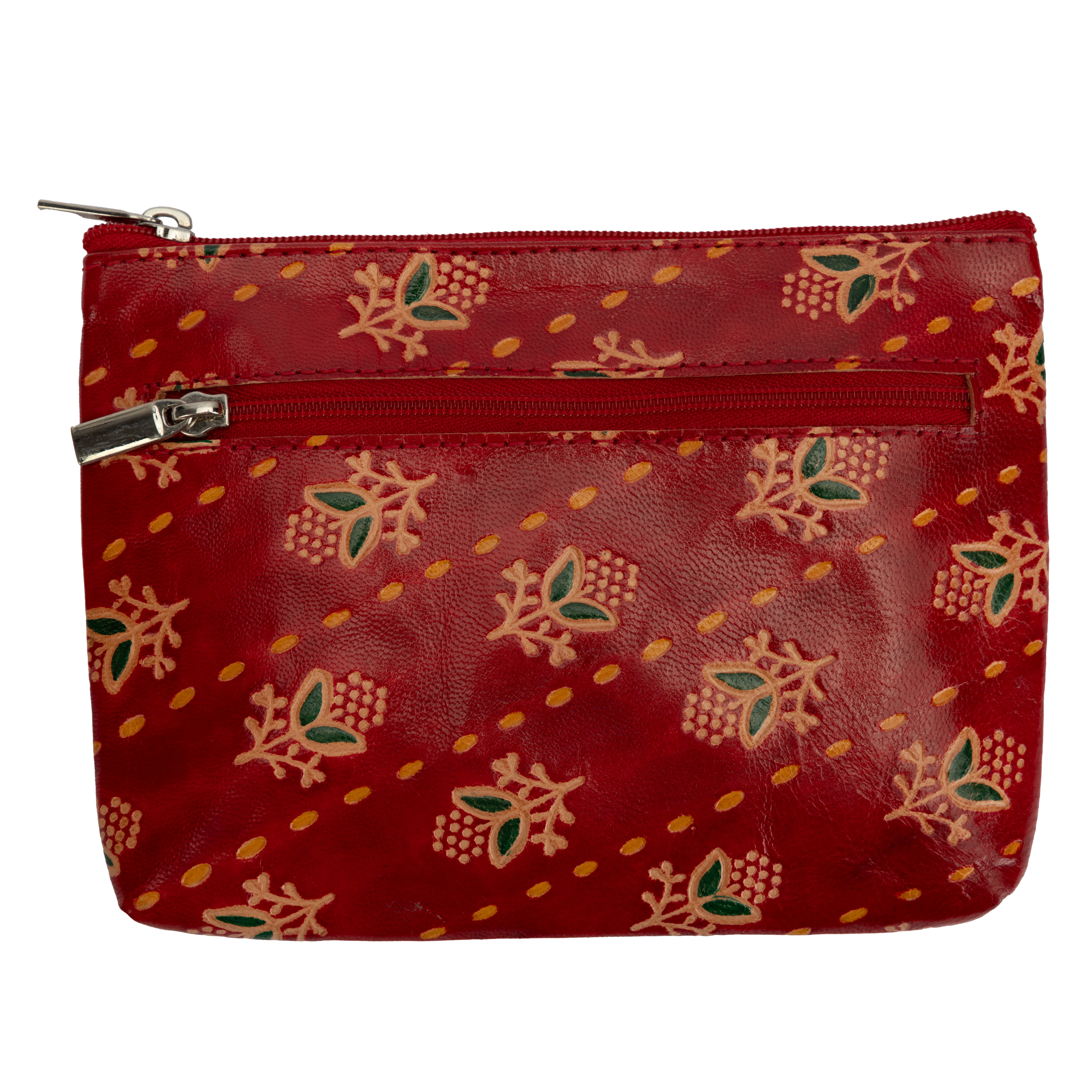 Ziegenleder, rot/grün, zusätzliches Reißverschlussfach, 16 x 11,5 x 2 cm