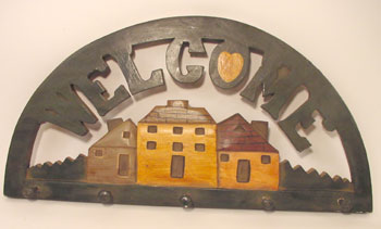 ID1-23-401 Garderobe "Welcome" Reliefschnitzerei bemalt