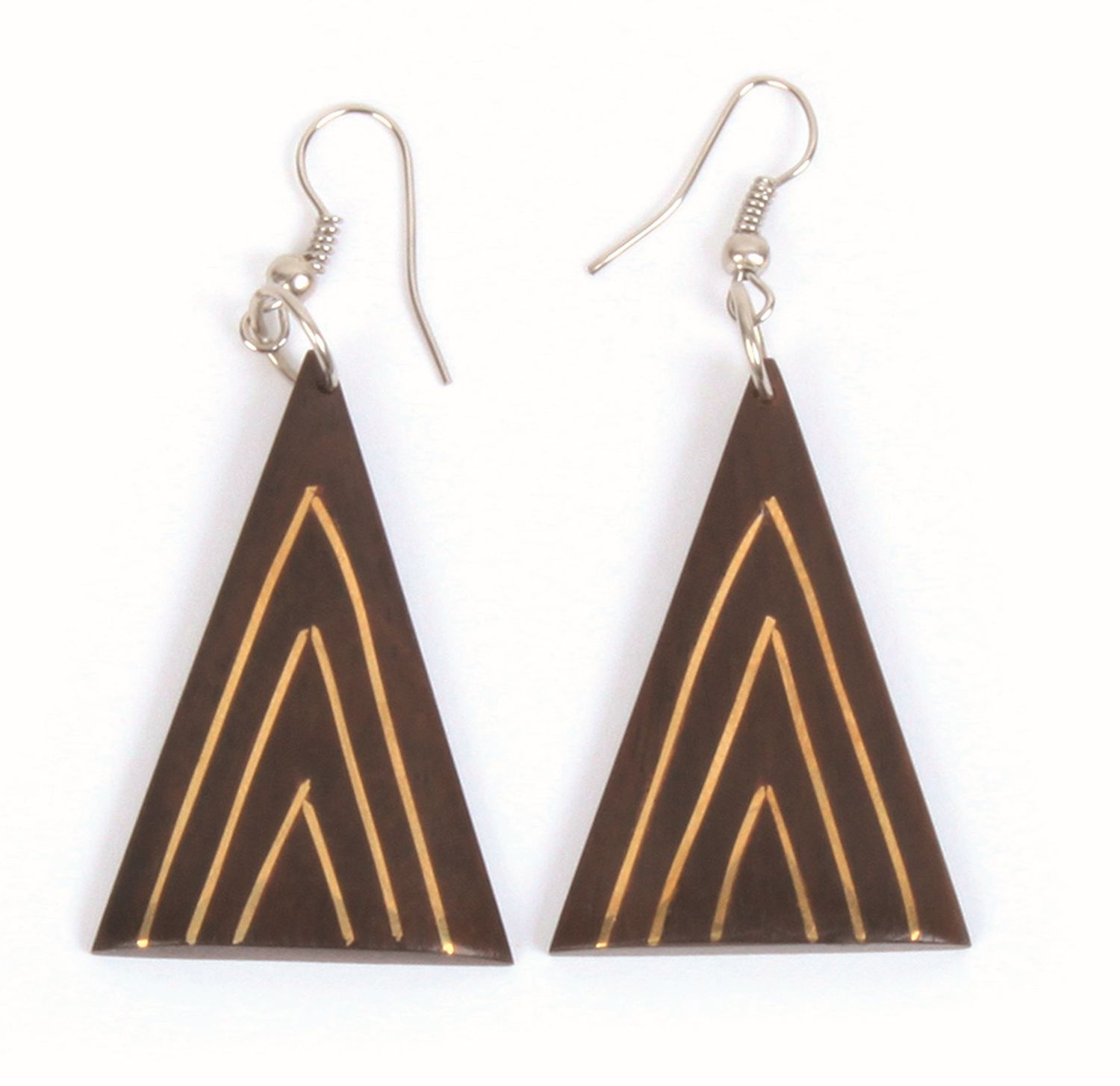 InfozeileSono-Holz mit eingearbeitetem Kupferdraht, Ohrbügel aus 925er-Silber (0,4 g), L 4,5 cm