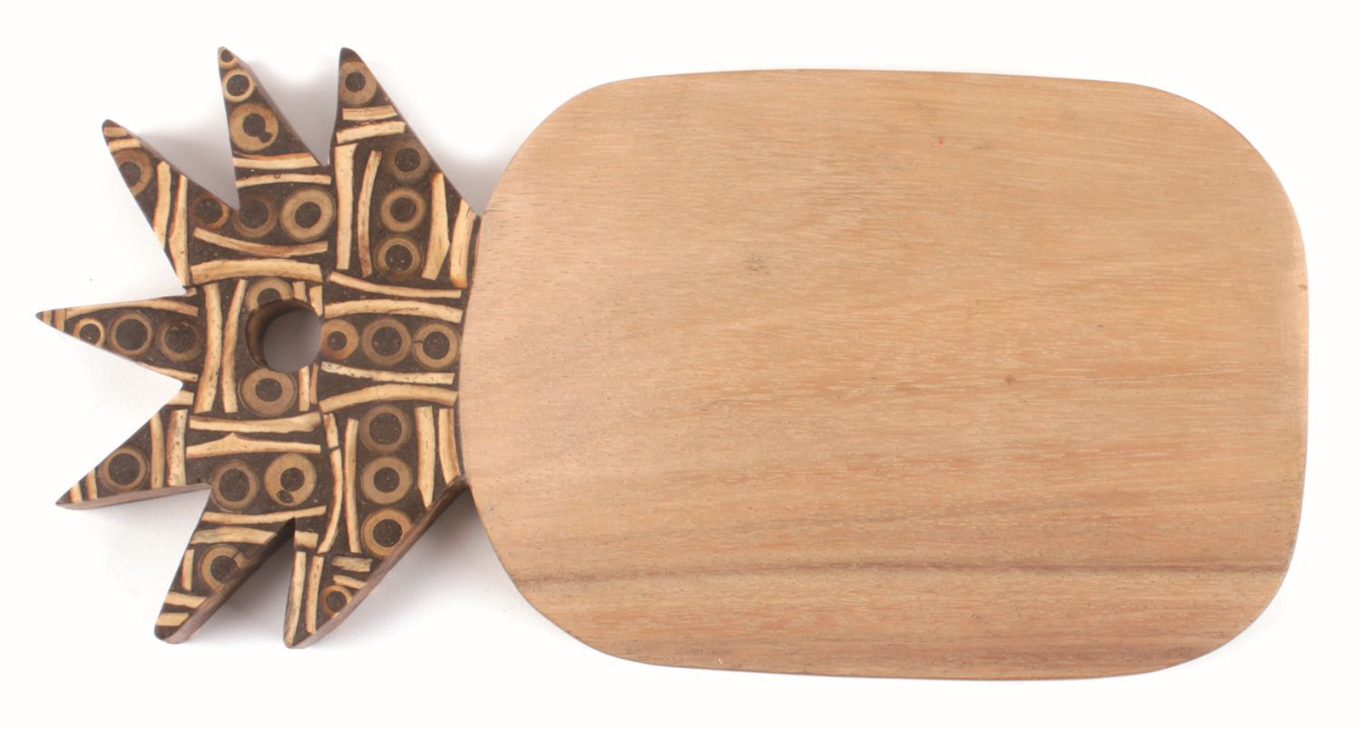 InfozeileRegenbaumholz mit eingearbeiteten Bambusscheiben und Kokosnussschale, 30 x 15 cm