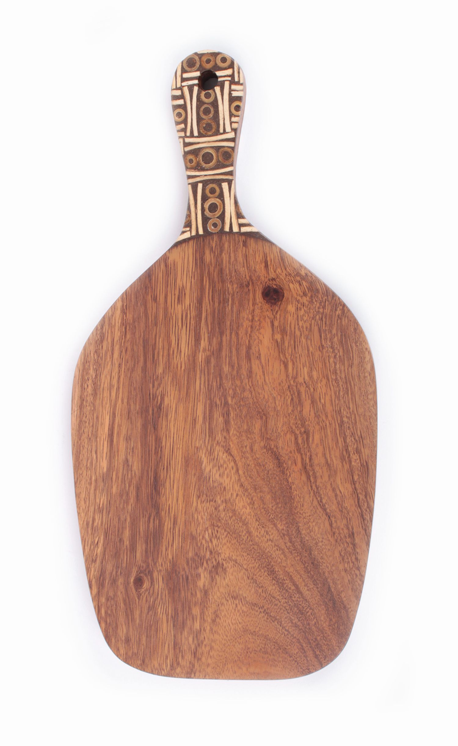Regenbaumholz mit eingearbeiteten Bambusscheiben und Kokosnussschale, 41 x 20 cm