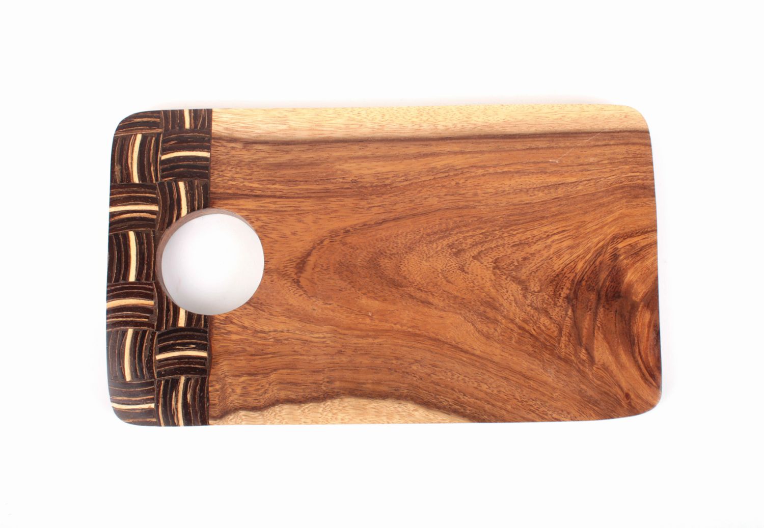 Regenbaumholz mit eingearbeiteter Kokosnussschale, 35 x 20,5 cm