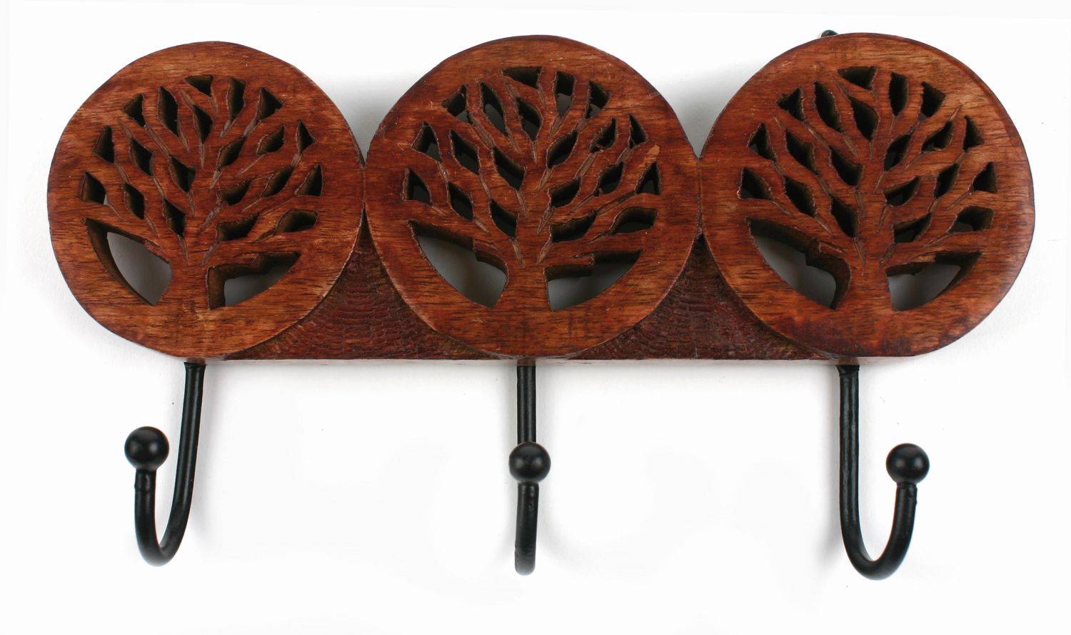 mit 3 Haken, Mango-Holz, 27 x 14,5 cm
