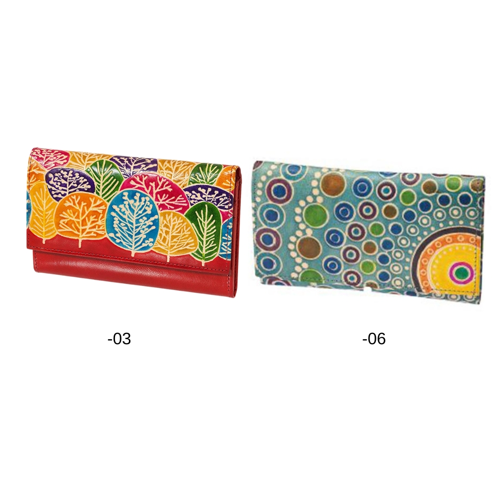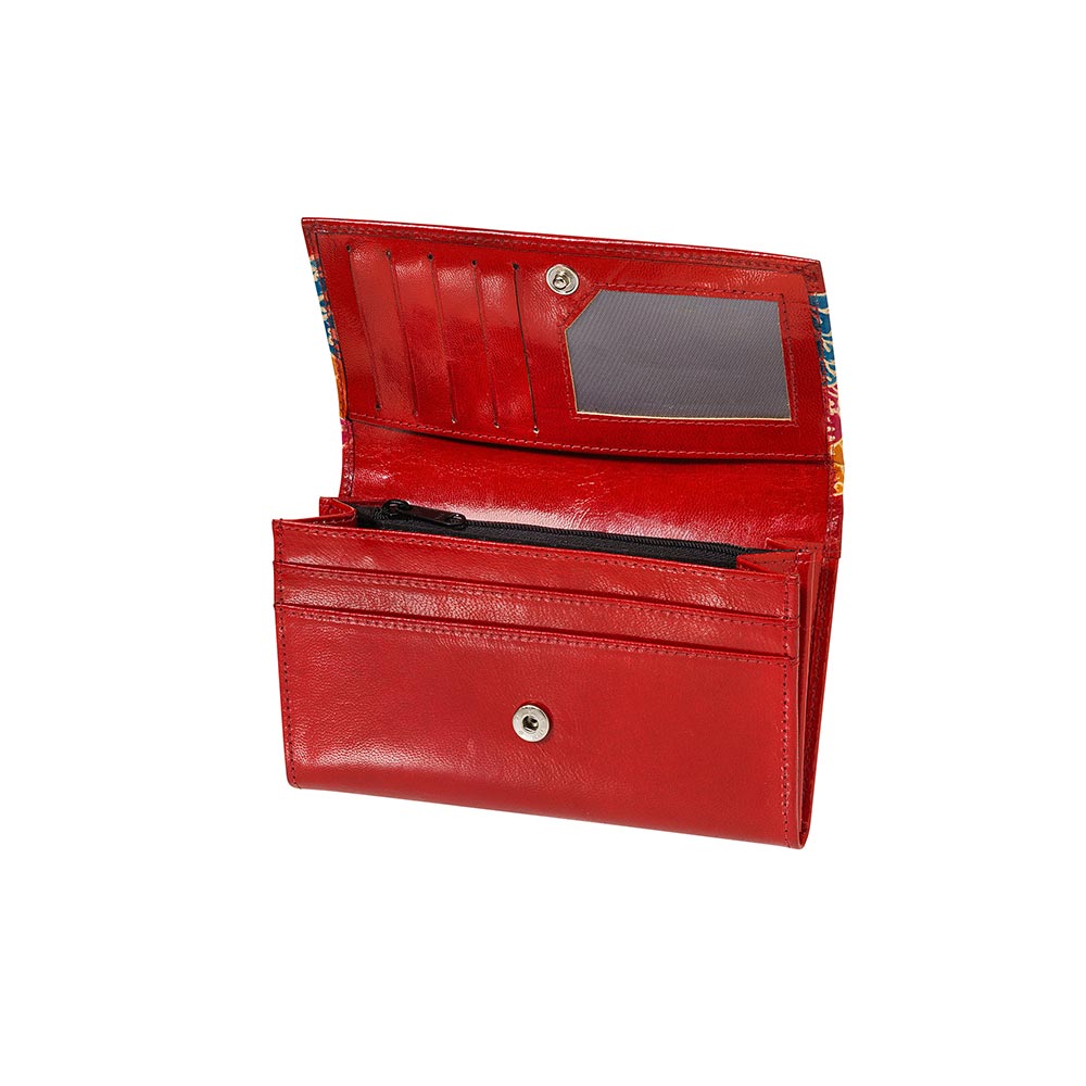 IN0-25-109-03 Geldbörse "Herbst", mit Druckknopf, Kartenfächer und Münzfach mit Reißverschluss, Bunte Bäume/rot, Ziegenleder, 17x3x10