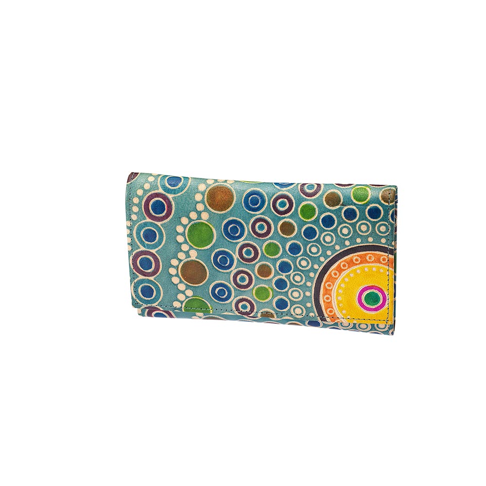 IN0-25-109-06 Geldbörse, mit Druckknopf, Kartenfächer, Münzfach mit Reißverschluss, Punktmuster, grün/bunt, Ziegenleder, 17x3x10