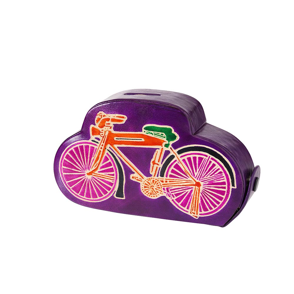 IN0-27-013 Spardose "Fahrrad", mit Druckknopfverschluss, bunt, Ziegenleder, 10x18