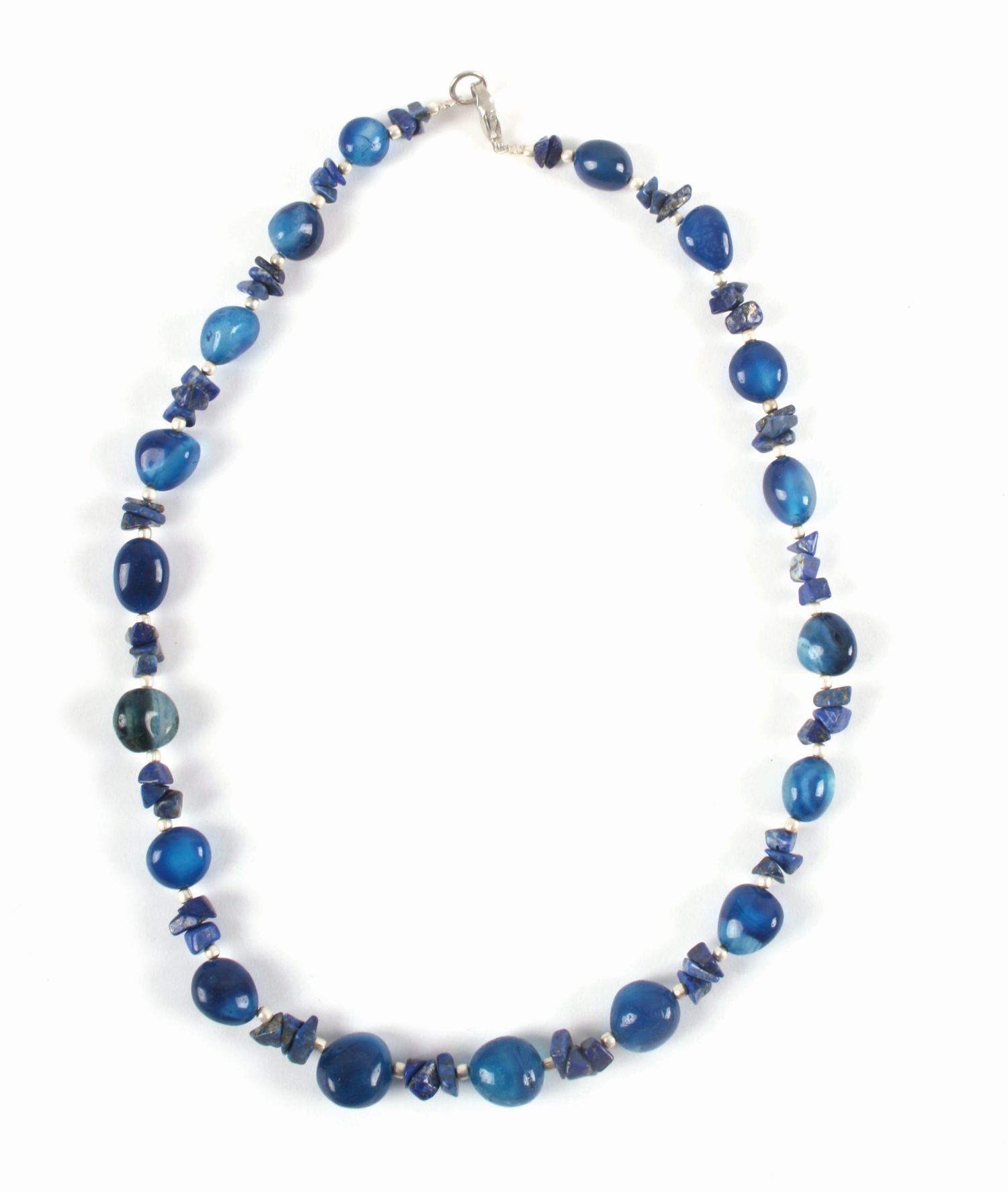Lapis, Quartz- und versilberte Messingperlen, L 50 cm