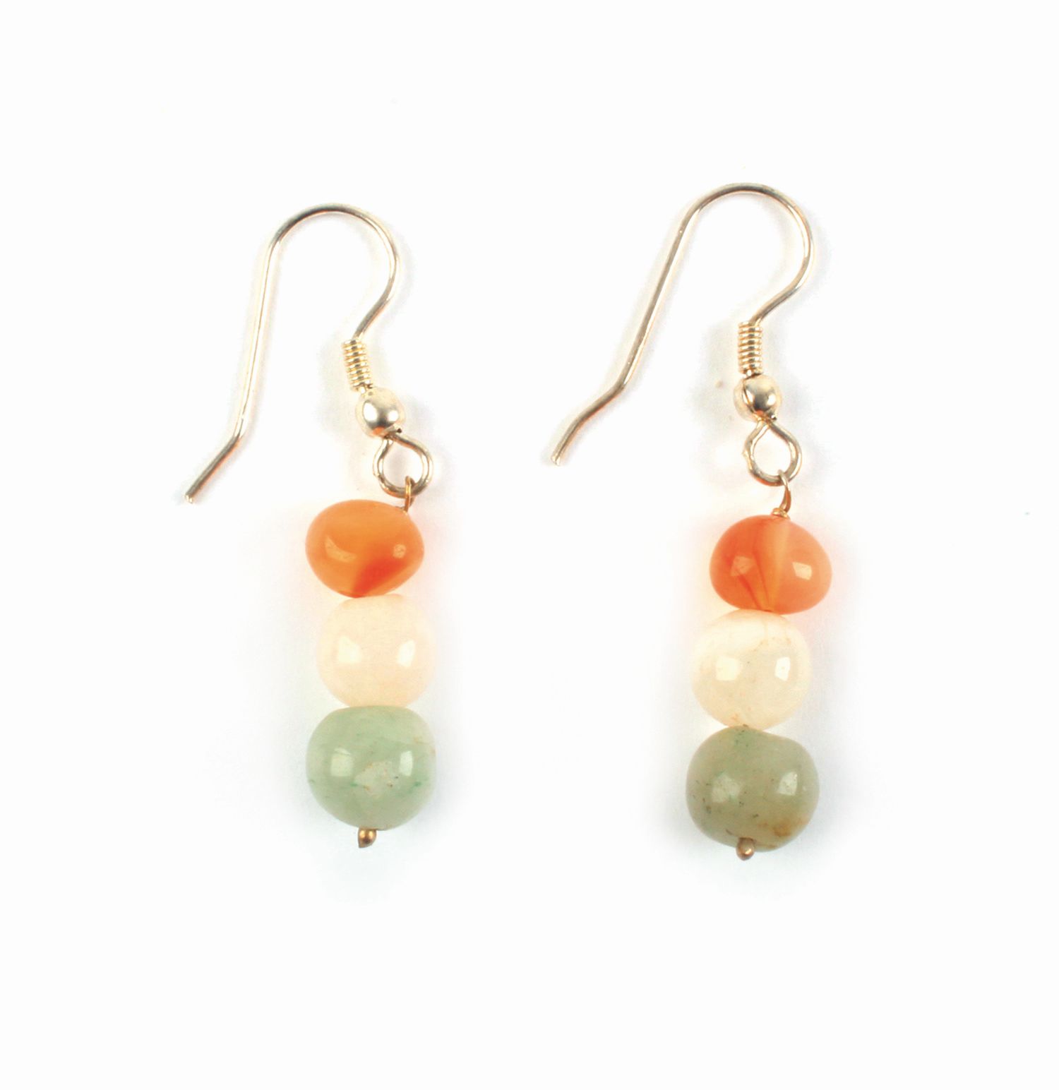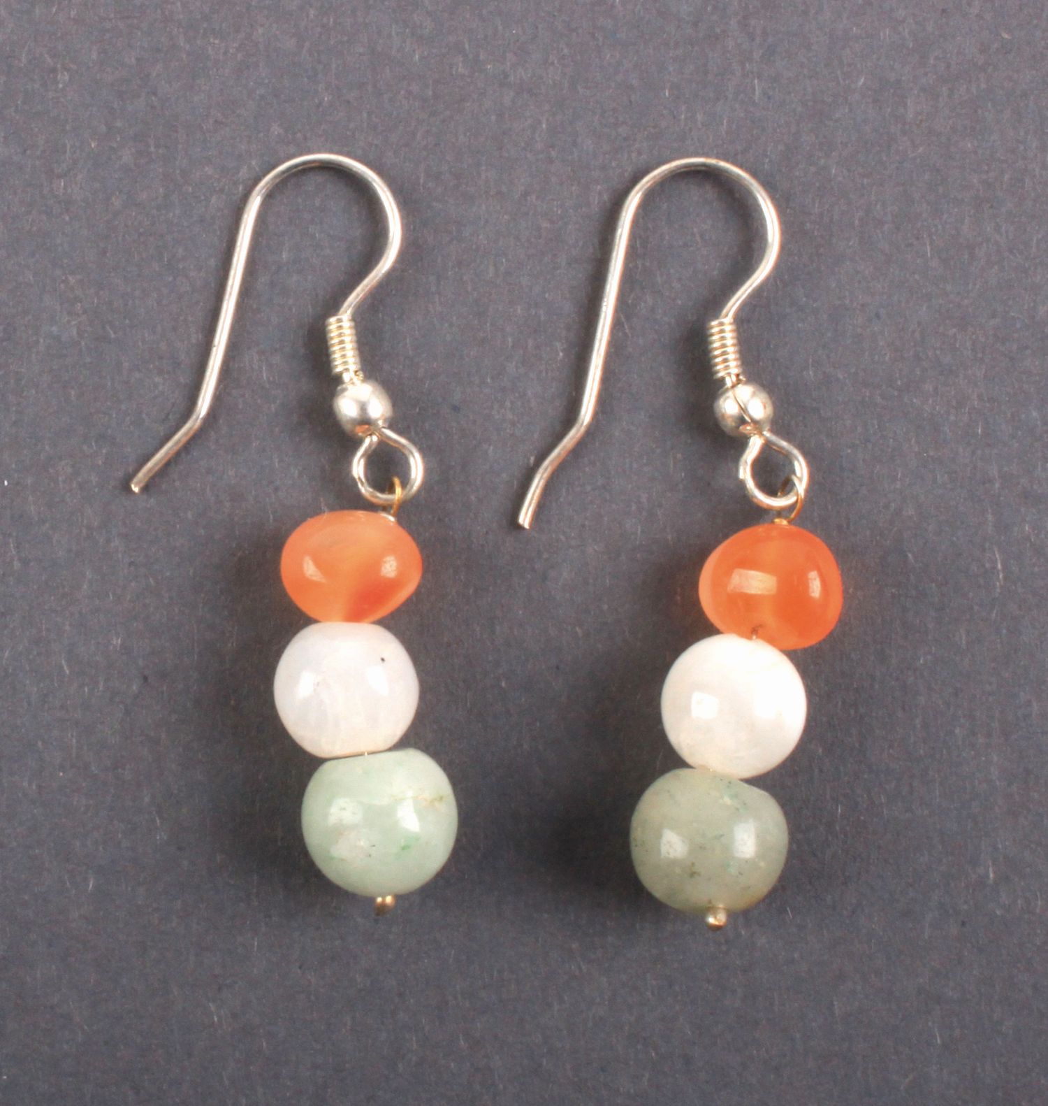 Quartz, Achat und Karneol, Ohrbügel: Messing versilbert, L 2,5 cm