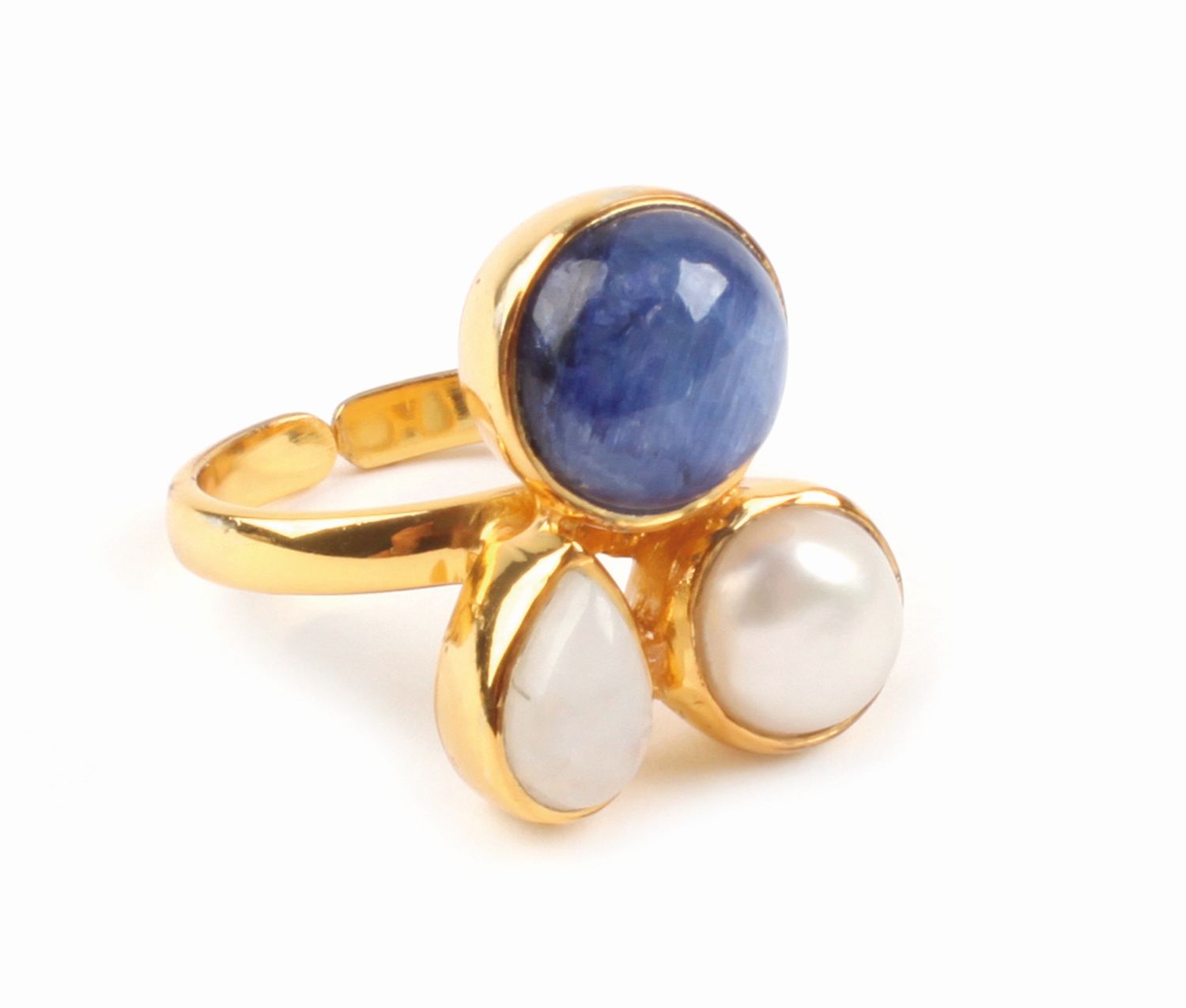 925er Silber (5,6 g), vergoldet, Süßwasserperle, Sillimanit und Regenbogen Steine, Größe 18, offen