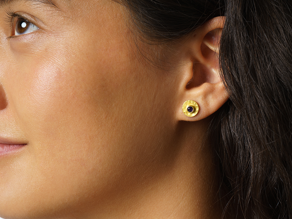 925er Silber (1,8 g) vergoldet mit Amethysten, Ø 10 mm