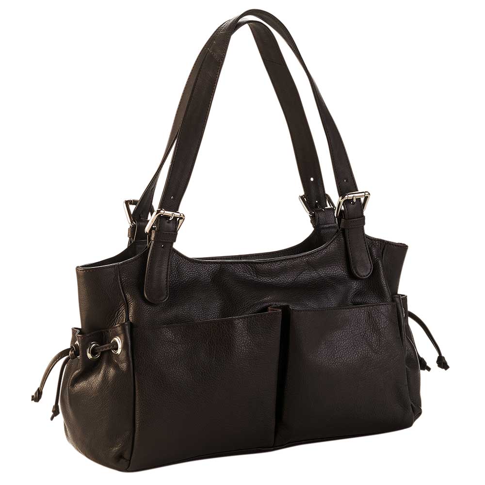 IN0-53-069 Handtasche mit Reißverschluss, Außentaschen und Inneneinteilung, Henkel verstellbar, dunkelbraun, Rindsleder, 27x21x9