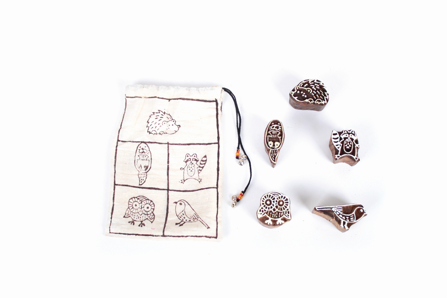 IN1-20-836 Kalamkari- Holzstempel "Waldtiere"