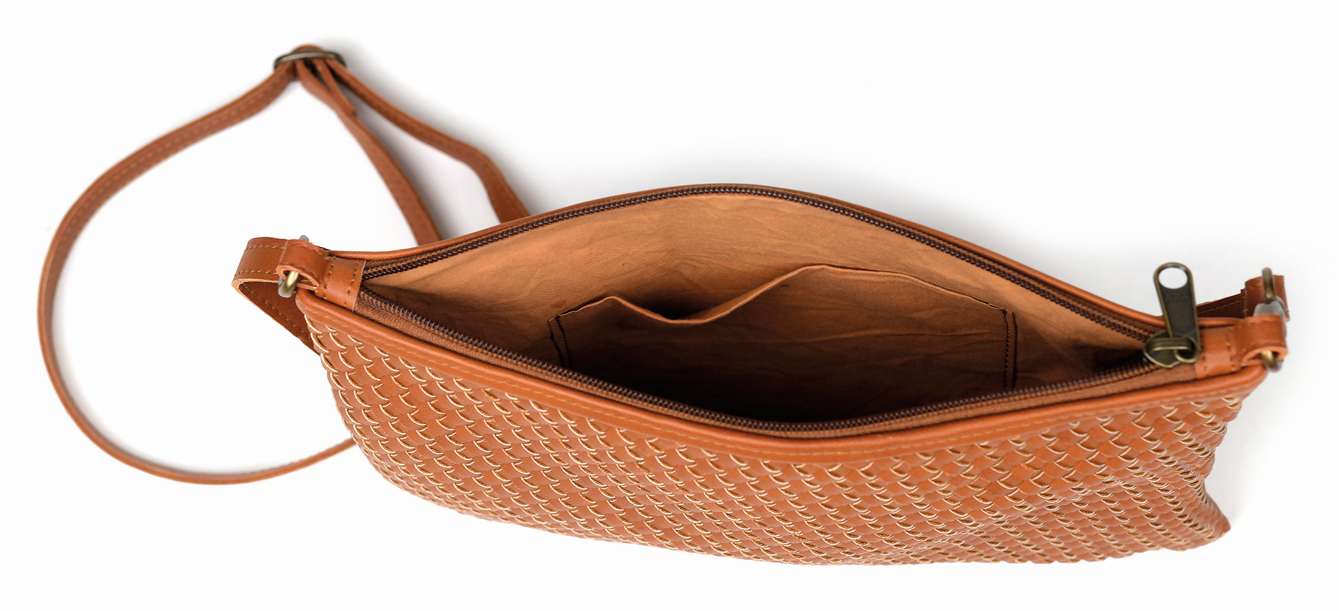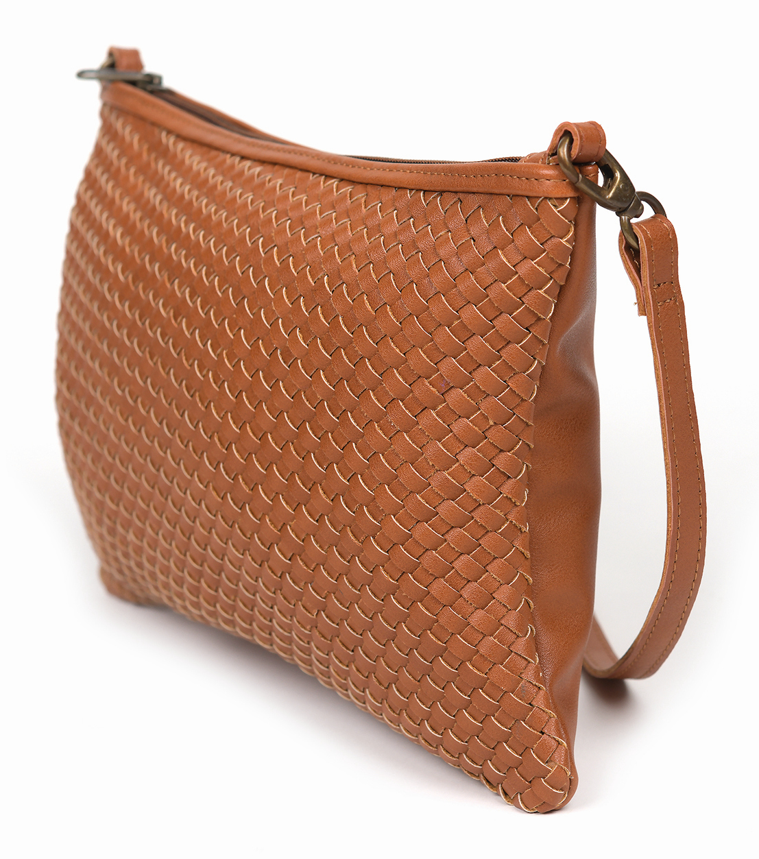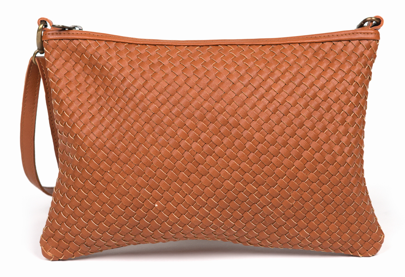 Infozeilegeflochtenes Kunstleder mit Reißverschluss und einer Innentasche, braun, 30 x 20 cm
