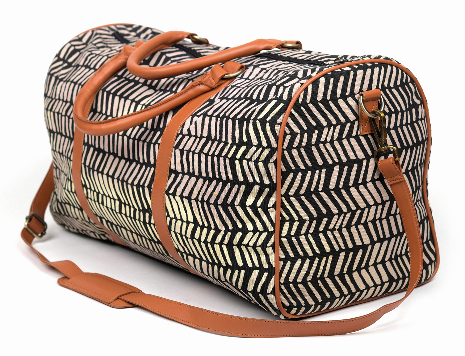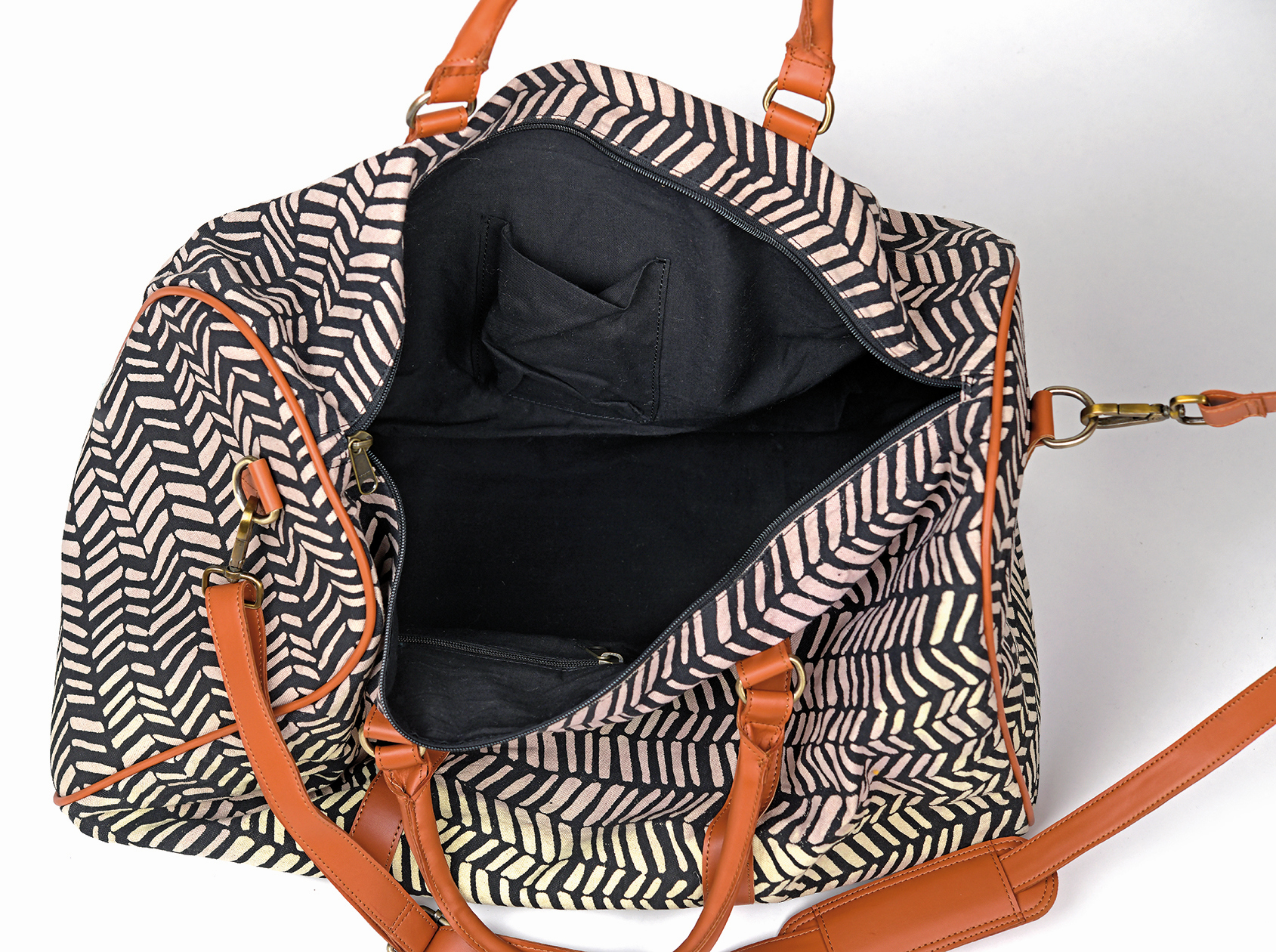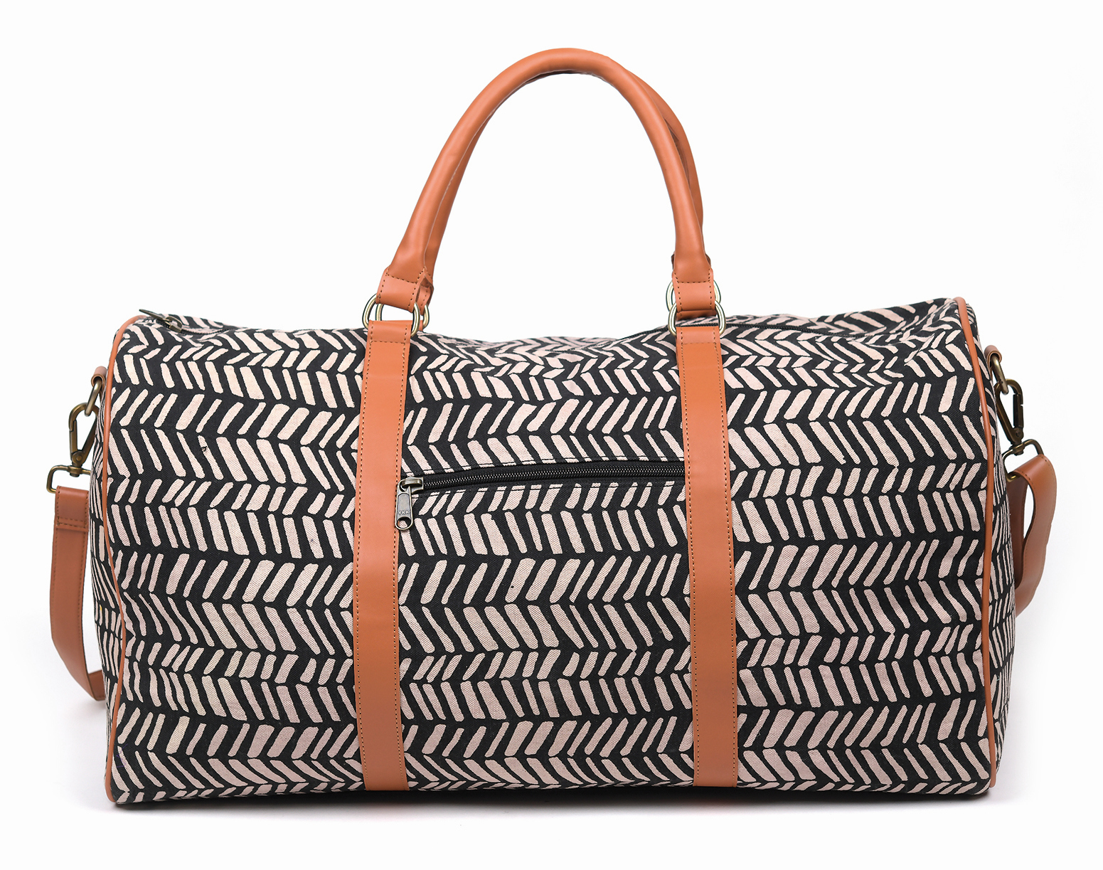Infozeile100% Baumwolle mit Kunstledergriffen, Reißverschlusstasche innen und außen und weiterer Innentasche, schwarz/cremeweiß, 53 x 27 cm