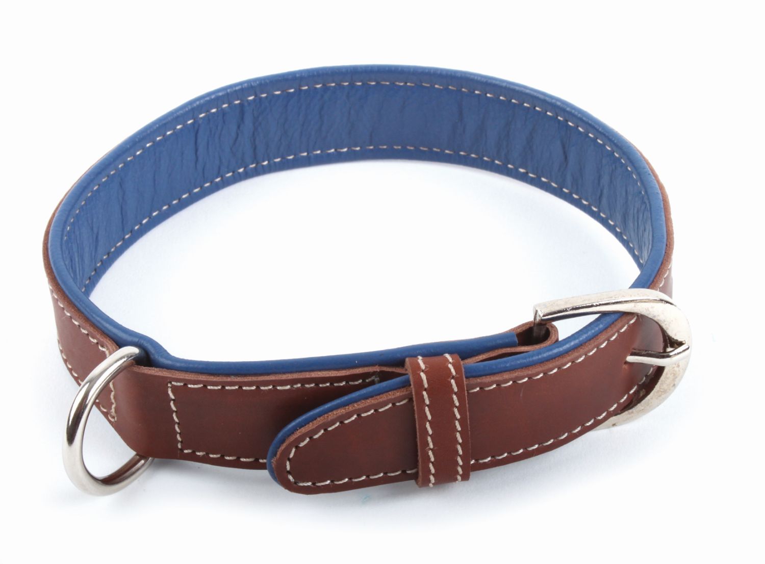 Rindsleder, braun/blau, L 50 cm, B 3 cm, passend für Halsumfang 37 - 41 cm
