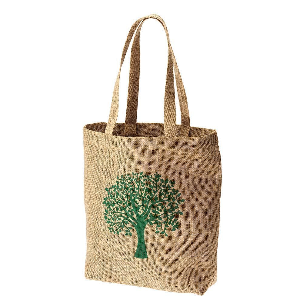 IN1-50-003-01 Jutetasche "Baum", natur, Druck grün,100% Jute, 41x41x13
