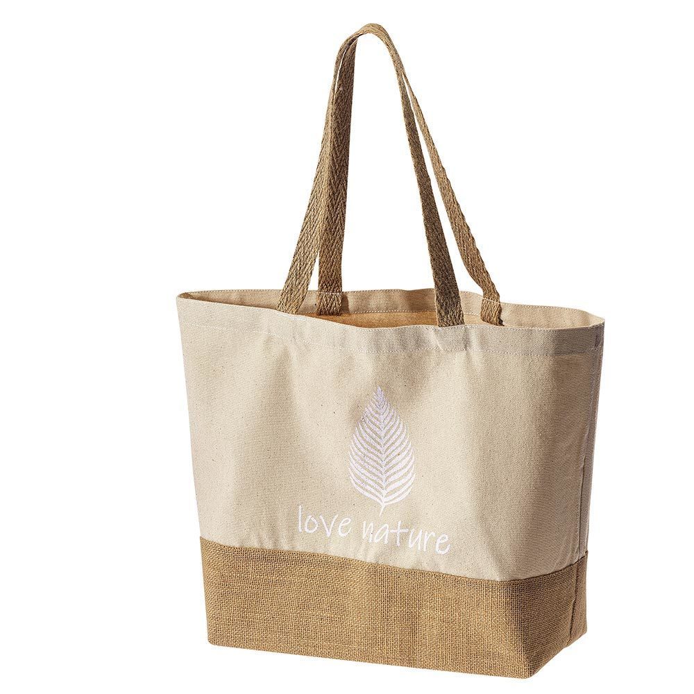 IN1-50-004 Tasche "Love Nature", naturfarben mit weißem Aufdruck, Bio-Canvas mit Juteboden und Jutehenkel (H27), 35x48x17