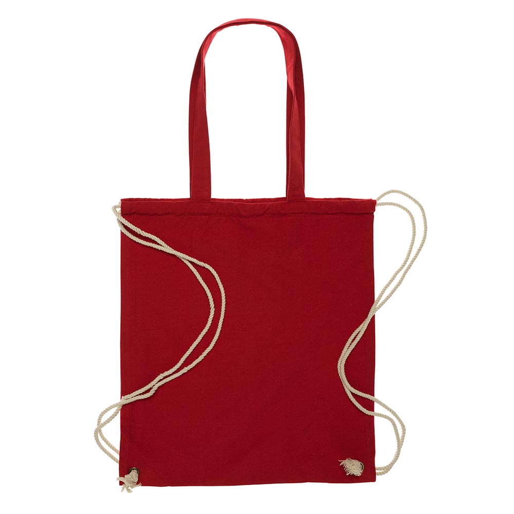 IN1-53-006-03 Rucksack/Beutel/Tasche, mit Tragegriffen und Kordel, Innentasche, rot, Bio-Baumwolle, 38x40