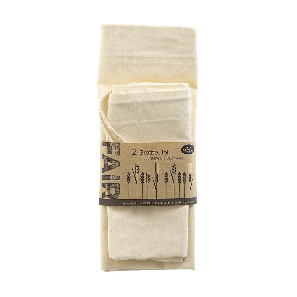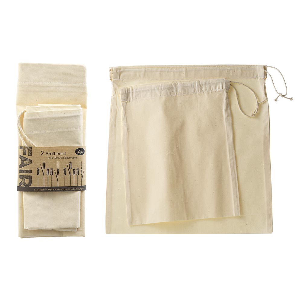 IN1-53-010 Mehrwegbeutel für Brot, 2er Set, naturweiß, Bio-Baumwolle, 1 Beutel 36x39, 1 Beutel 26x32