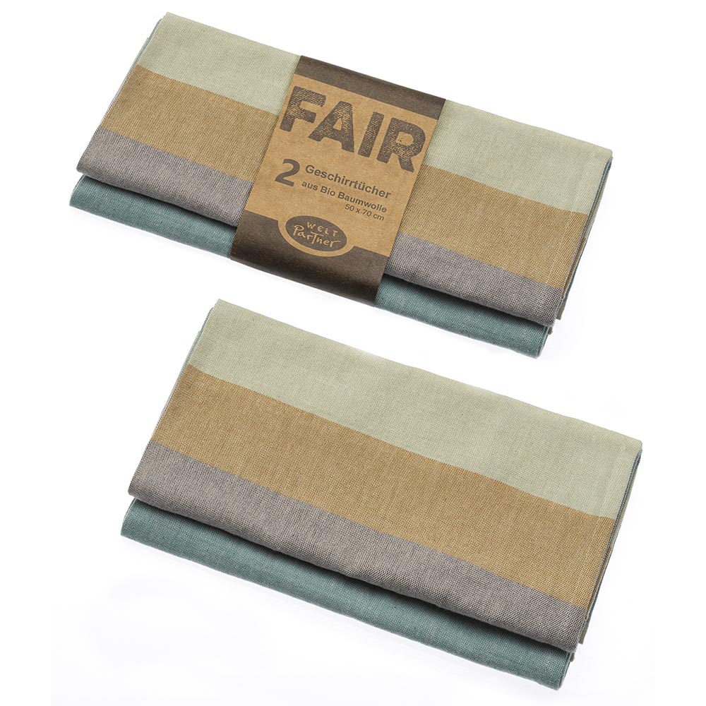 IN1-83-007 Geschirrtücher, 2er-Set, mit Streifen, handgewebt, Blautöne, Bio-Baumwolle, 70x50