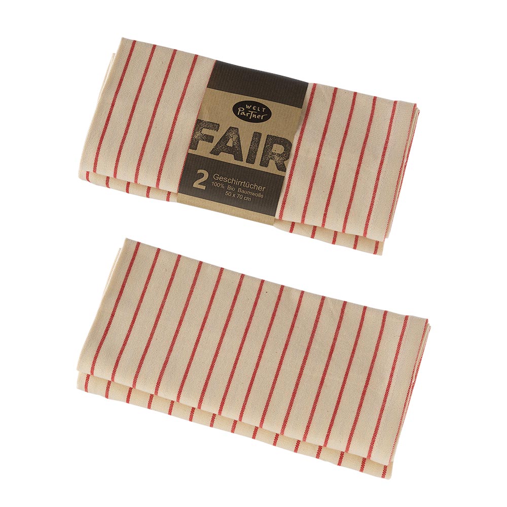 IN1-83-010-03 Geschirrtücher, 2er-Set, mit schmalen Streifen, naturweiß/rot, handgewebt, Bio-Baumwolle, 70x50