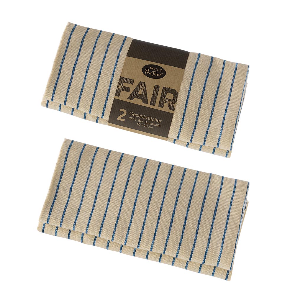 IN1-83-010-04 Geschirrtücher, 2er-Set, mit schmalen Streifen, naturweiß/königsblau, handgewebt, Bio-Baumwolle, 70x50