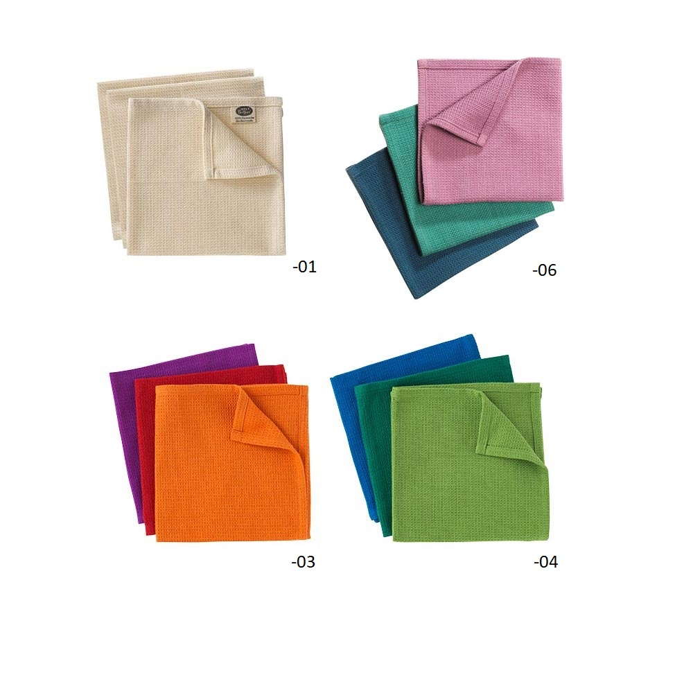 IN1-83-011-06 Spültücher, 3er-Set, Waffelgewebe, flieder/stahlblau/smaragdgrün, Bio-Baumwolle, 30x30