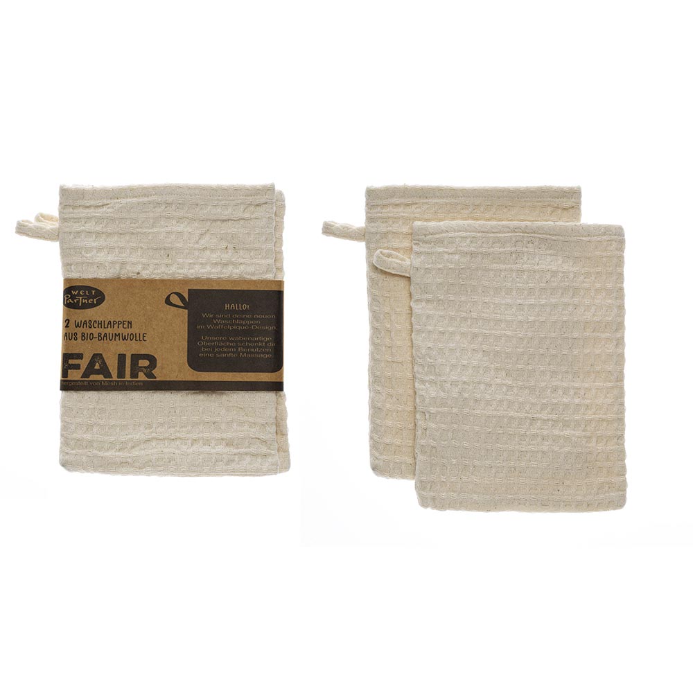 IN1-86-001-01 Waschlappen, 2er-Set, Waffelpiqué, gefüttert, naturweiß, Bio-Baumwolle, 15x20