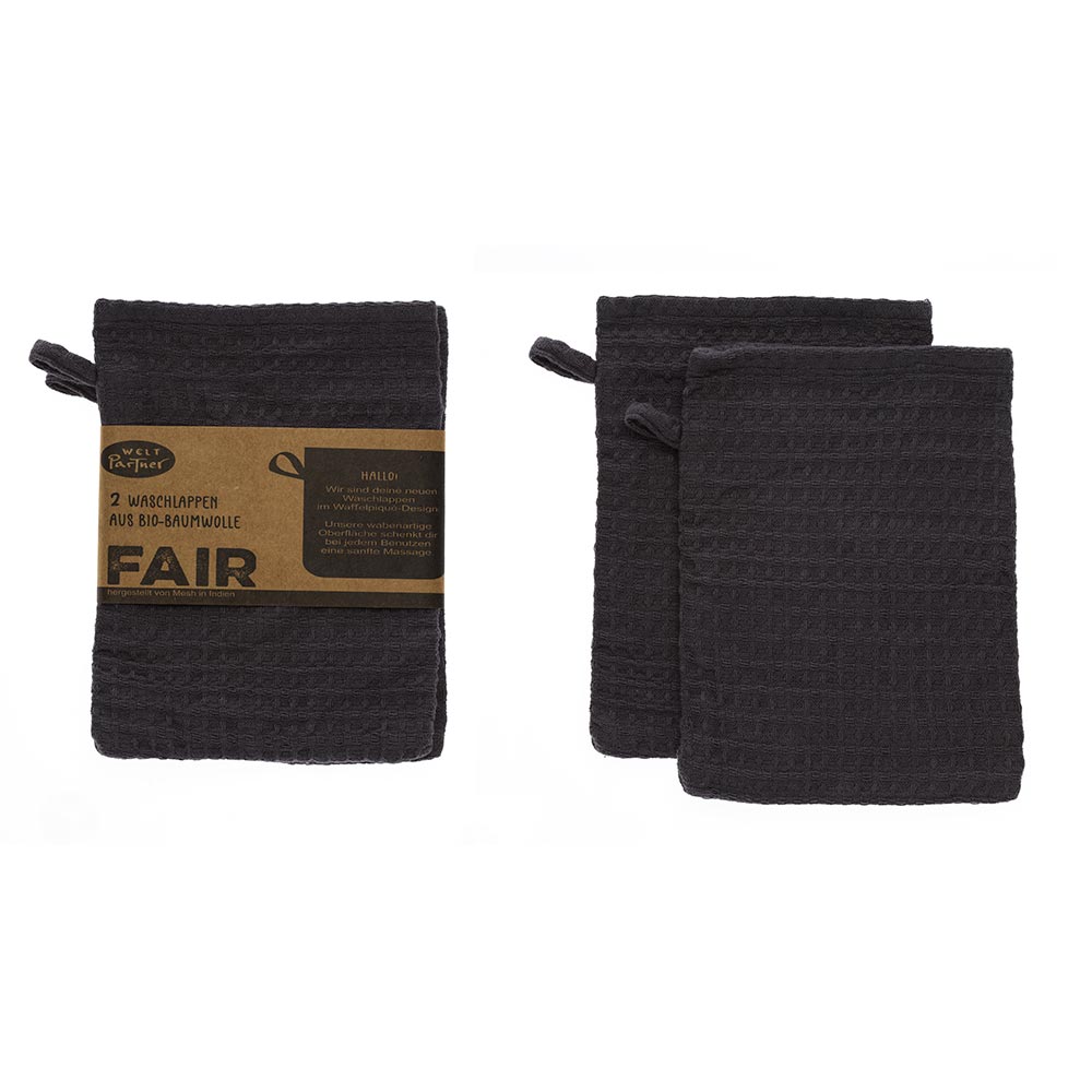 IN1-86-001-10 Waschlappen, 2er-Set, Waffelpiqué, gefüttert, anthrazit, Bio-Baumwolle, 15x20