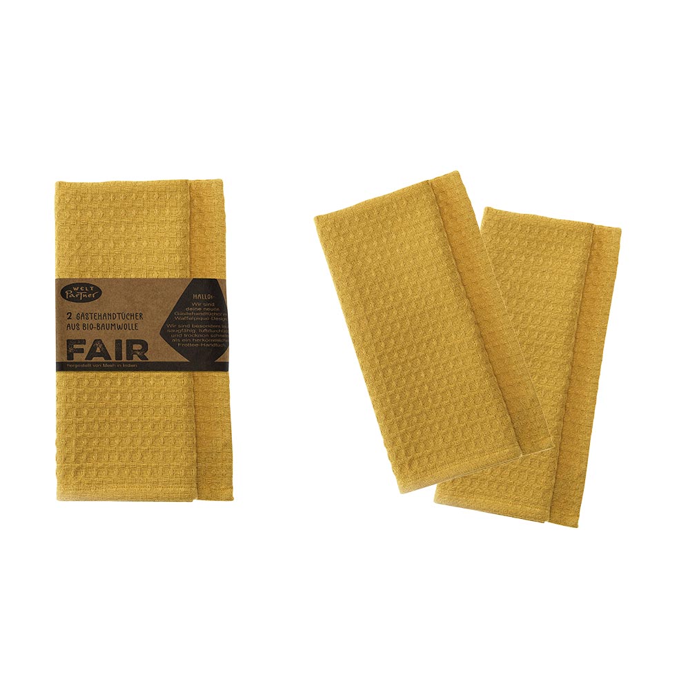 IN1-86-002-05 Gästehandtücher, 2er-Set, Waffelpiqué, senfgelb, Bio-Baumwolle, 30x50