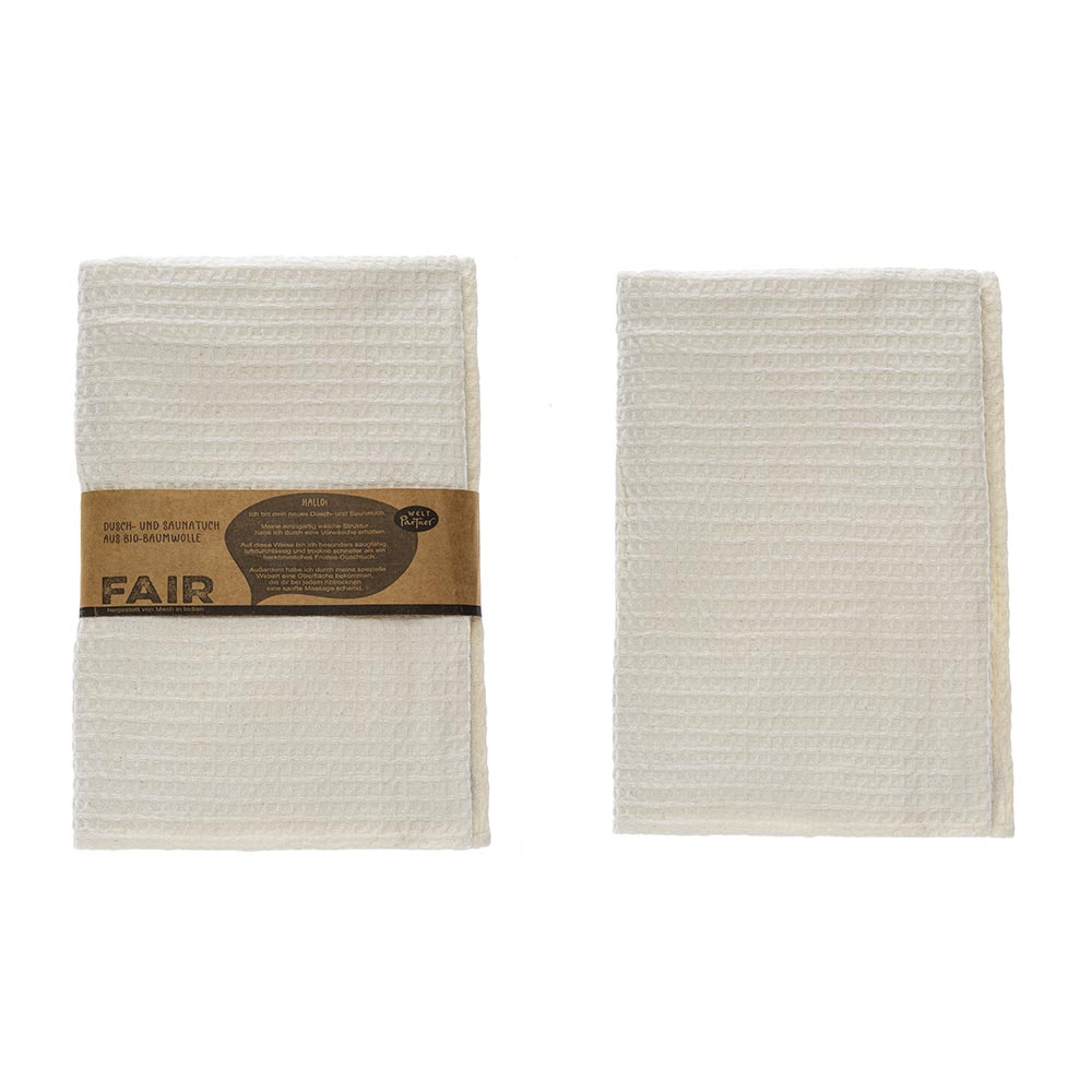 IN1-86-004-01 Dusch- und Saunatuch groß, Waffelpiqué, naturweiß, Bio-Baumwolle, 100x150