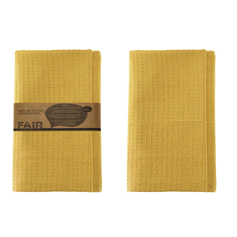 IN1-86-004-05 Dusch- und Saunatuch groß, Waffelpiqué, senfgelb, Bio-Baumwolle, 100x150