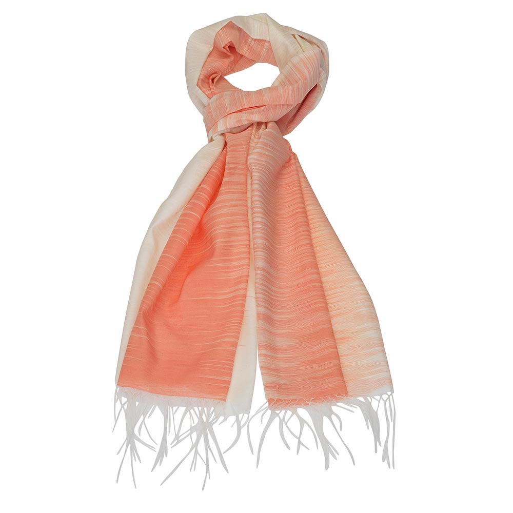 IN2-22-035 Schal, handgewebt in Ikat-Technik, mit Streifen, mit Fransen, weiß/rosa, Seide/Baumwolle (50/50), 60x180