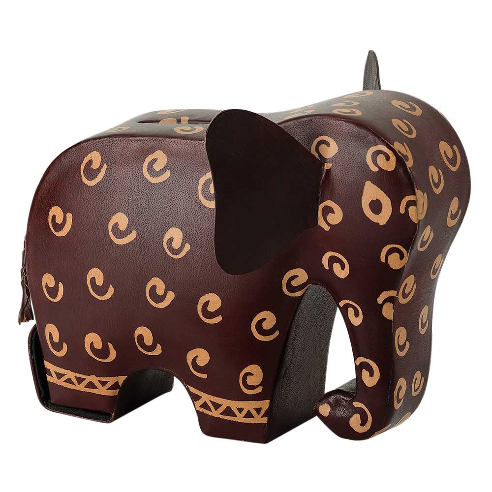 IN2-27-001 Spardose "Elefant", mit Druckknopfverschluss, rotbraune Farbtöne, Ziegenleder, 17x14x5