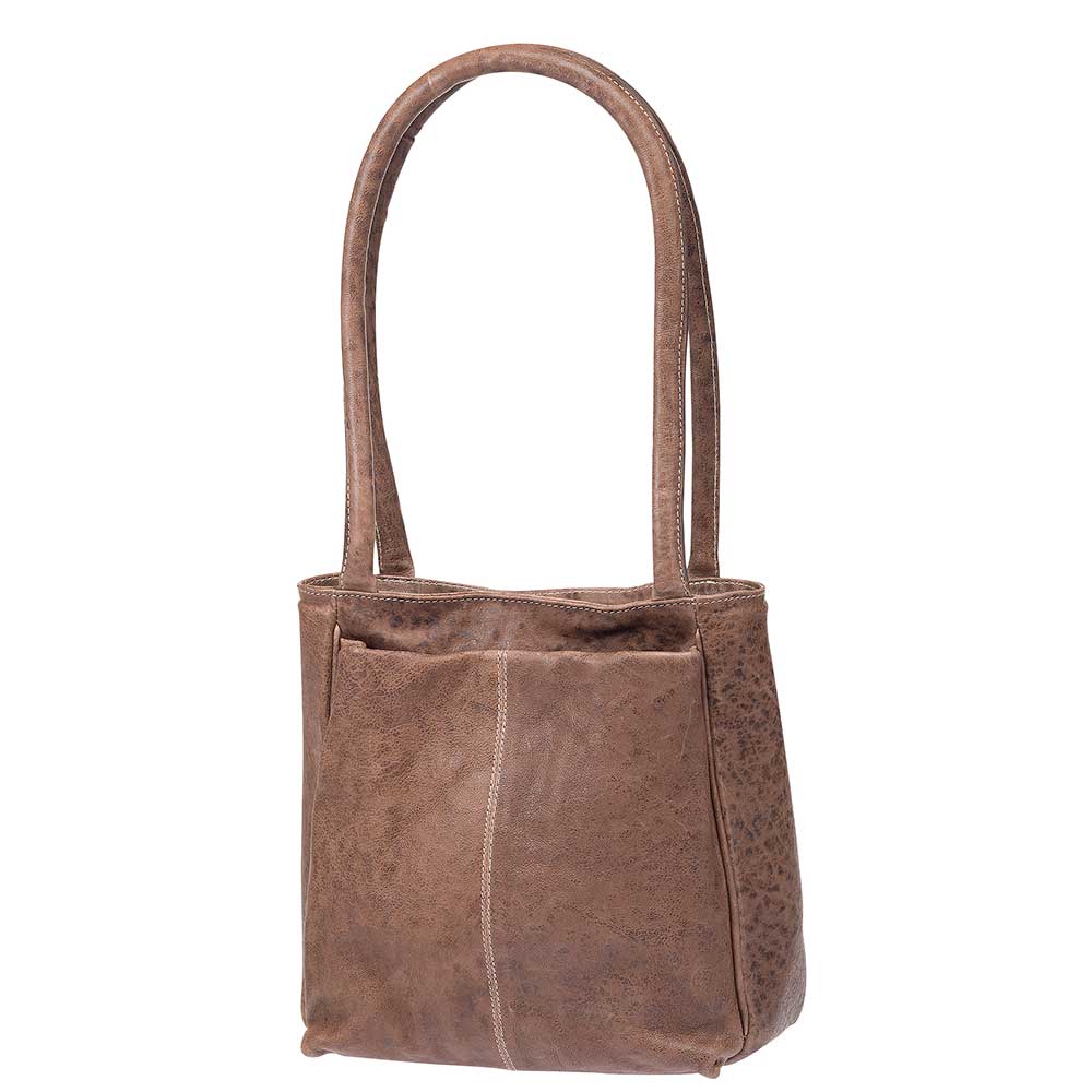 IN2-53-025-08 Handtasche, mit Reißverschluss, Innentasche mit Reißverschluss, Außentasche mit Magnetverschluss, leicht marmoriert, Henkel H28, braun, Rindsleder, 26x26