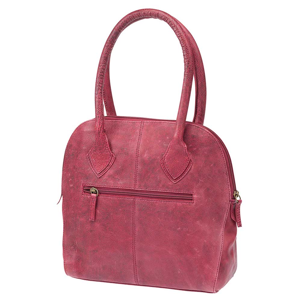 IN2-53-026-03 Handtasche, halbrunde Form, mit Reißverschluss, Innentasche und Außentasche mit Reißverschluss, leicht marmoriert, Henkel H28, rot, Rindsleder, 32x28
