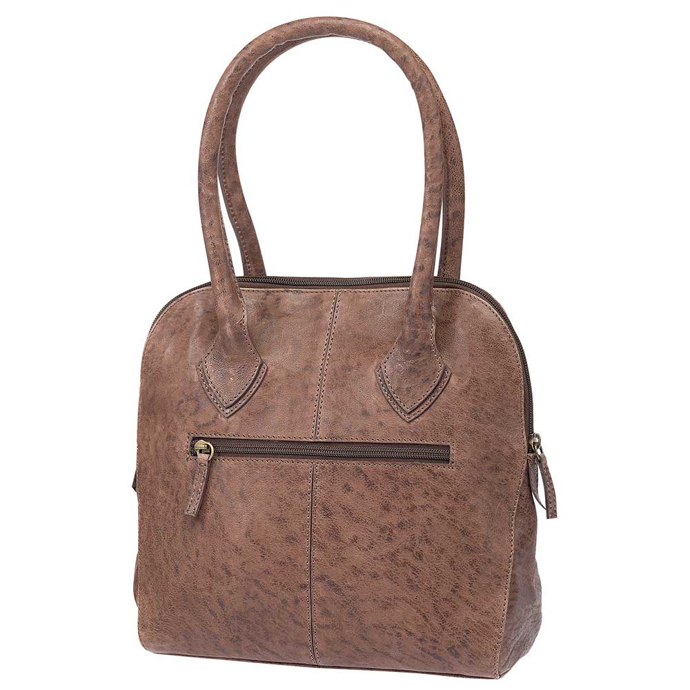 IN2-53-026-08 Handtasche, halbrunde Form, mit Reißverschluss, Innentasche und Außentasche mit Reißverschluss, leicht marmoriert, Henkel H28, braun, Rindsleder, 32x28