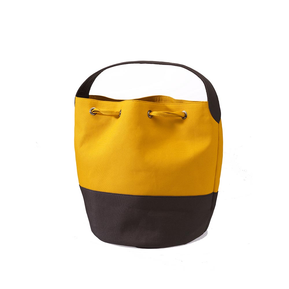 IN2-54-001 Beuteltasche, mit Innentasche, Schlüsselband innen, senfgelb/anthrazit, recyceltes Nylon, H31, Boden D24,5
