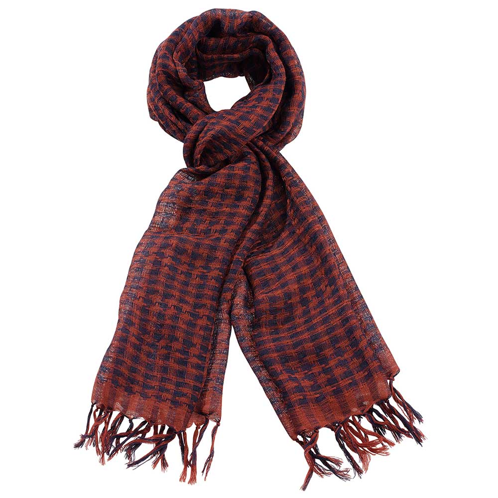 IN3-22-118 Schal, handgewebt, Streifenoptik, rot mit grau, Wolle, 55x180