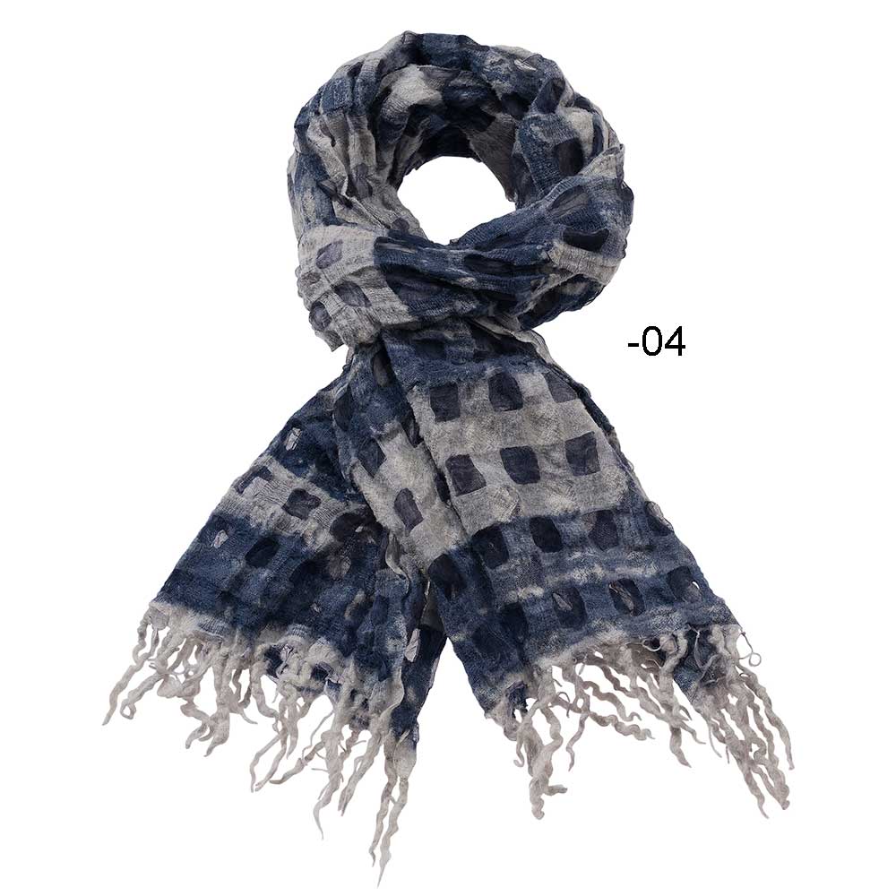 IN3-22-139-04 Schal, handgewebt, kariert mit Fransen, blau/grau, Wolle/Seide (50/50), 65x185