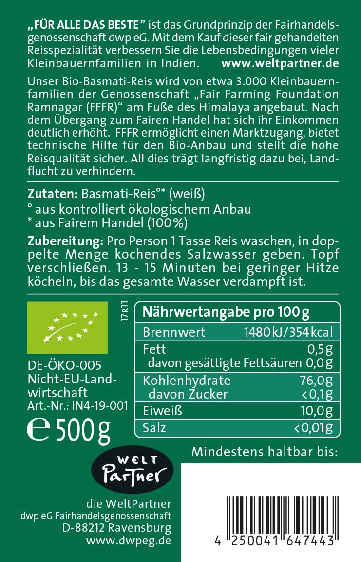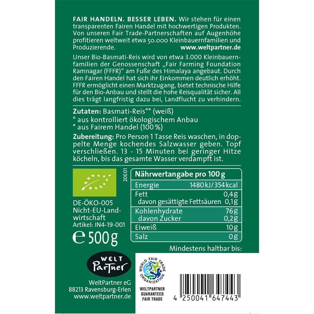 in4-19-001 - Basmati-Reis, weiß, bio°, 500g Produktblatt