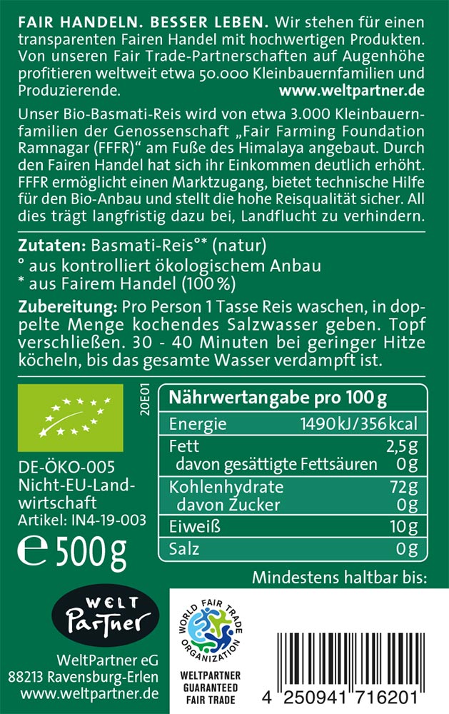 IN4-19-003 Basmati-Reis, natur, bio°, 500g