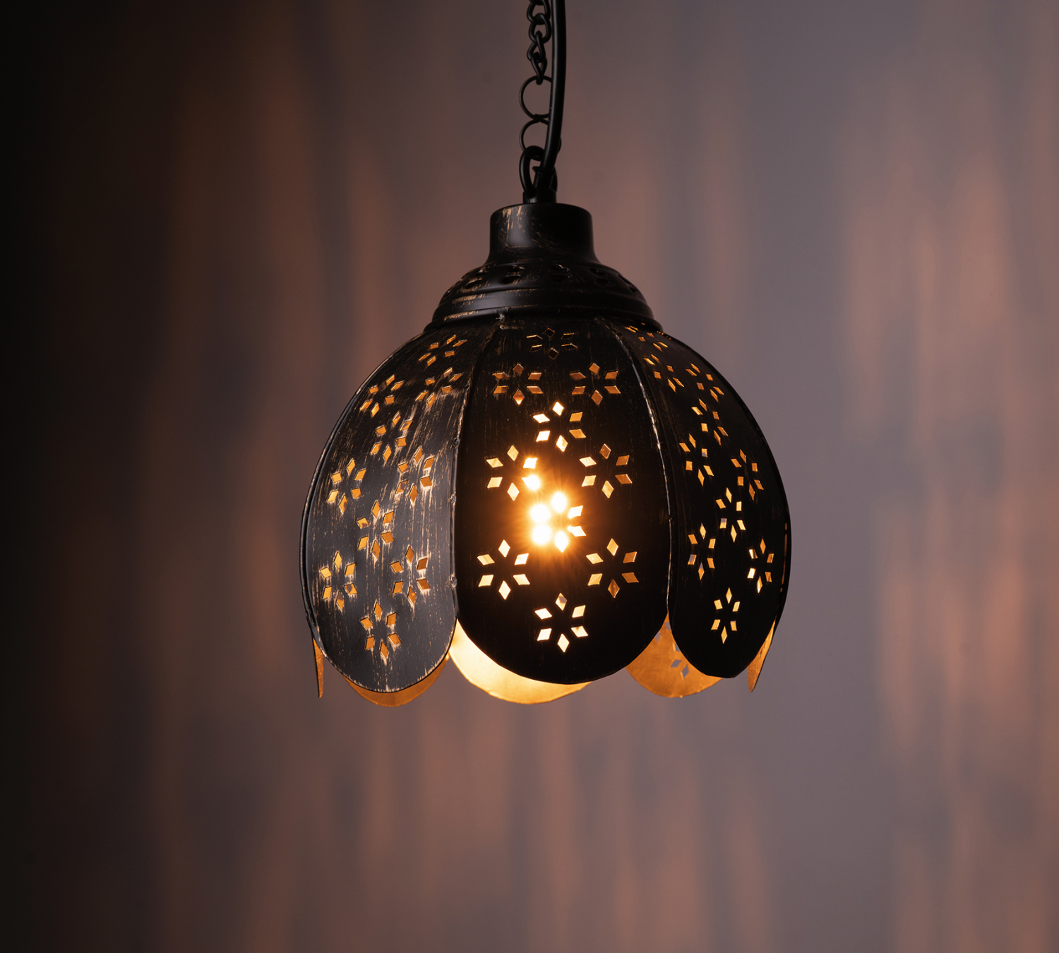 InfozeileEisen mit Blumen-Löcherung, inklusive Baldachin, schwarz/goldfarben, H 19,5 cm, Ø 17,5 cm