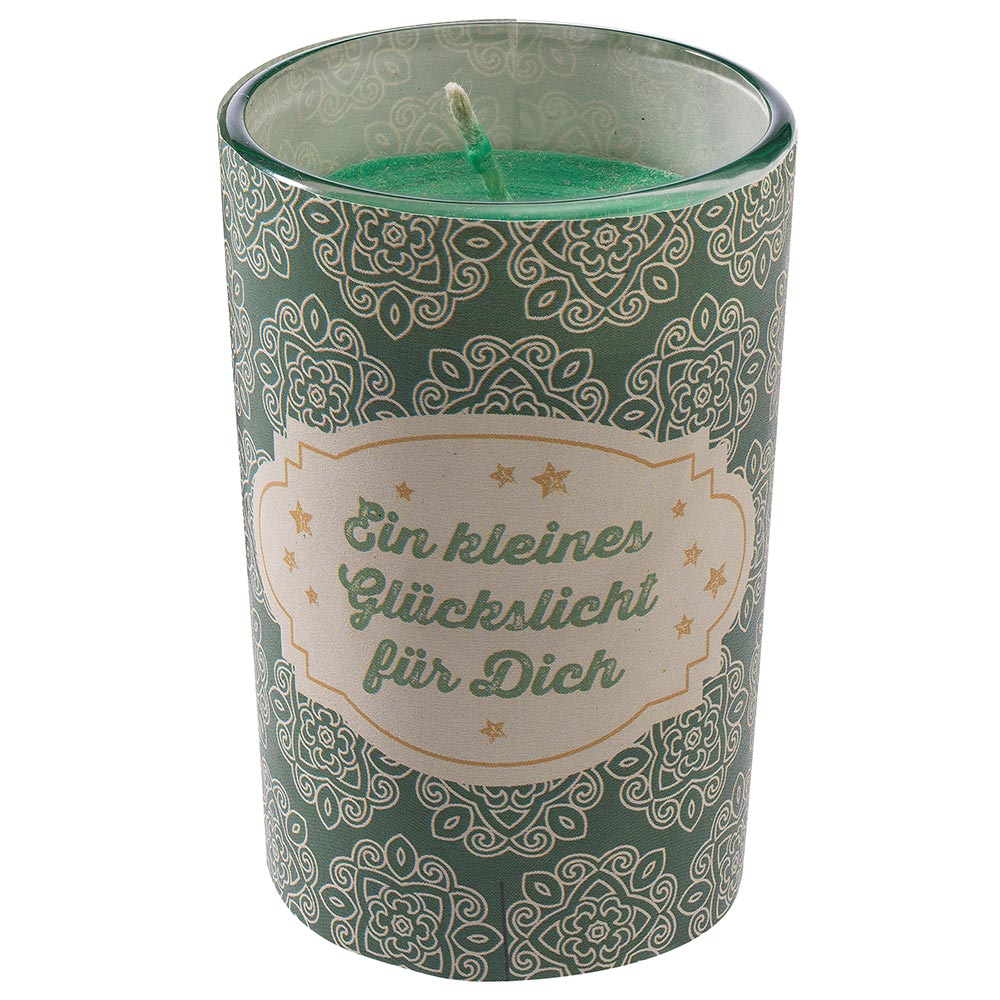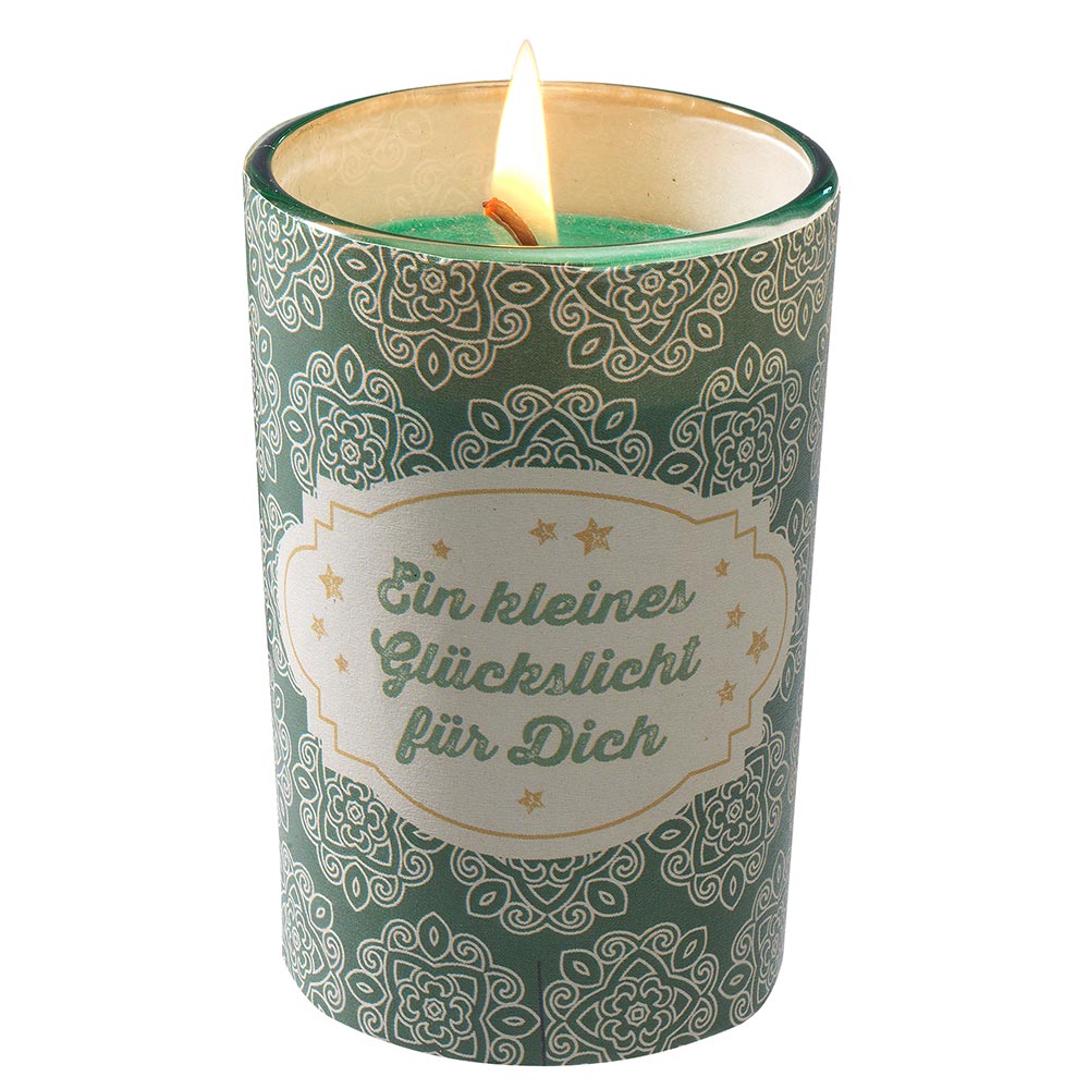 IN4-47-001-06 Duftkerze im Glas mit Spruch, Pinie, Sojawachs, H8,5, D6