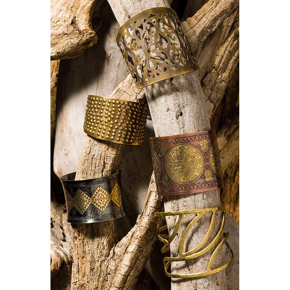 IN6-35-051 Armreif, offen, Ranke, braun und goldfarben, Messing, D6, L8