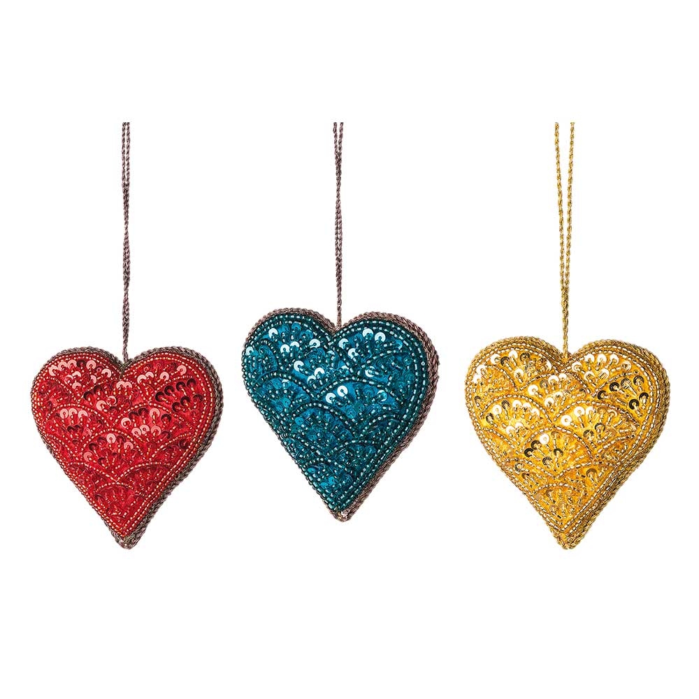 IN6-45-008-04 Anhänger "Herz", Textil mit Glasperlen und Pailletten, blau, H8